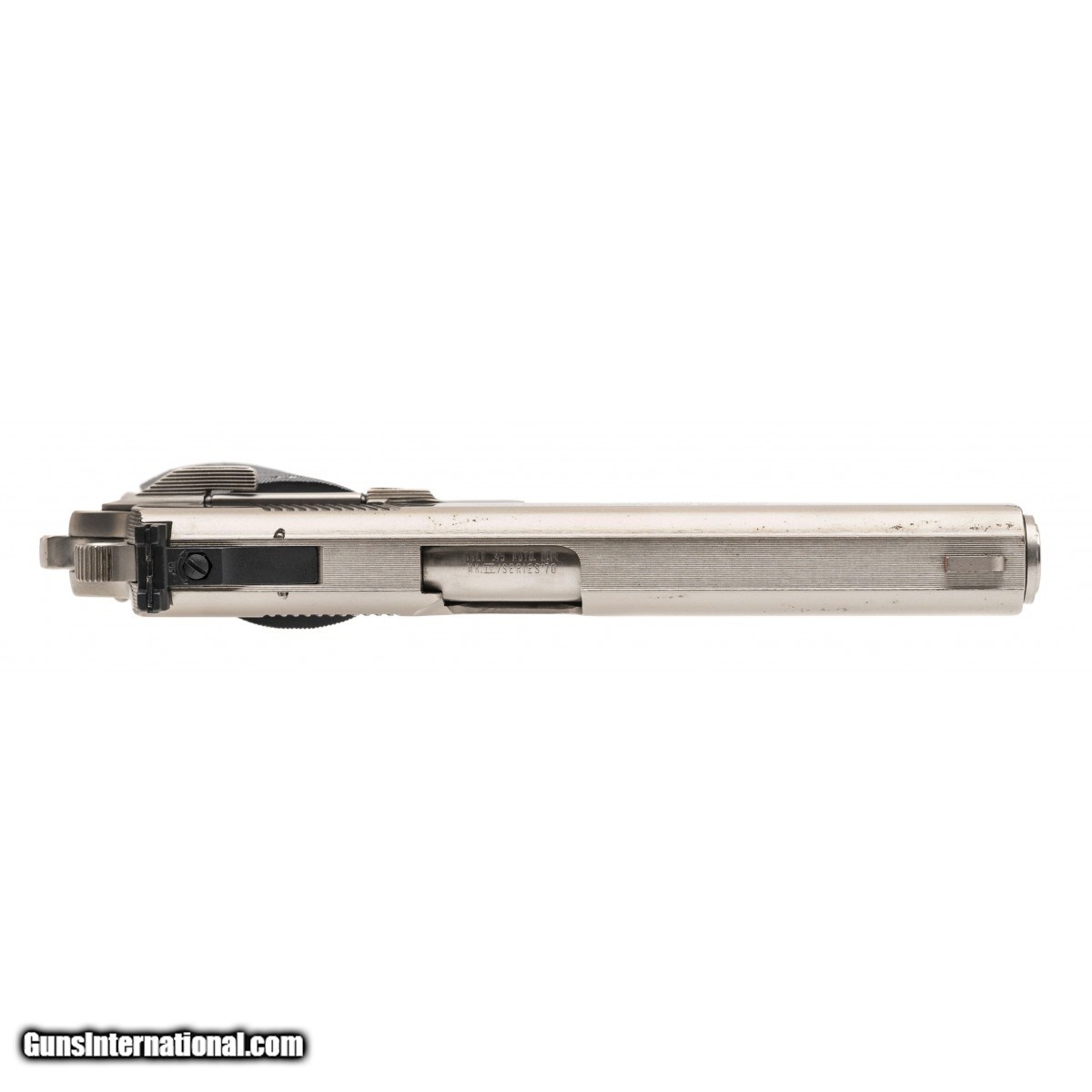 Description: "SN: 70N71491. Made in 1979. .45 with a 5"" barrel. Bore is very good with strong rifling. Colt Series '70 Gold Cup with Nickel finish. Finish is in very good condition with light wear noted. Pachmayr grips show minimal handling wear. Overall very good condition. Consignment. SOLD |