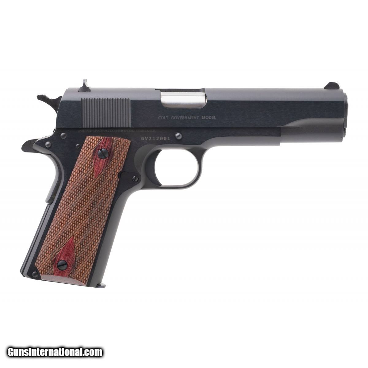 SN: GV212001. Modern production. .45 ACP with a 5"" barrel. Bore is excellent. Steel frame Government 1911. Blue finish and wood checkered grips are in excellent condition. Overall excellent condition.