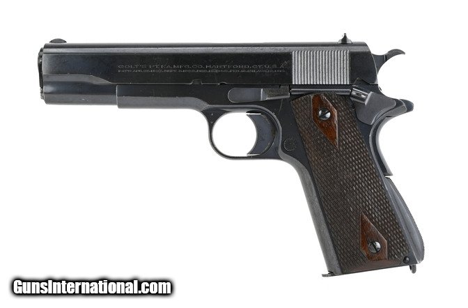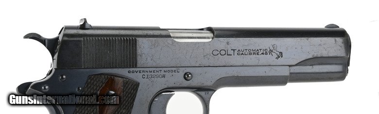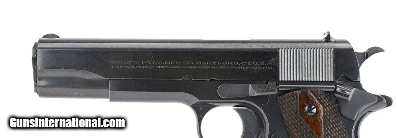 Description: " Colt Government .45 ACP caliber pistol. Commercial model made in 1922. Metal has approximately 95% original finish with carry wear. Bore is very good with strong rifling. Grips are very good. Very good overall condition.