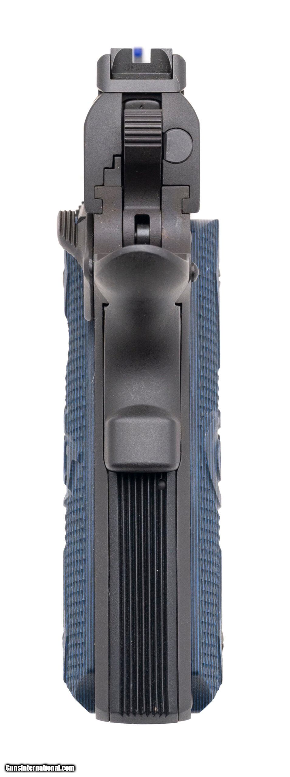 Description: "SN: CCS012570. Modern production, .45 Auto with a 5"" barrel. Bore is bright with strong rifling. Government size steel frame competition pistol with blue fiber optic front sight and G10 grips. Excellent condition with case and extra magazine. Price: $895.00 Contact Seller |