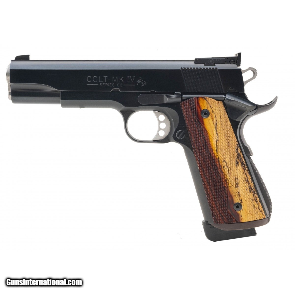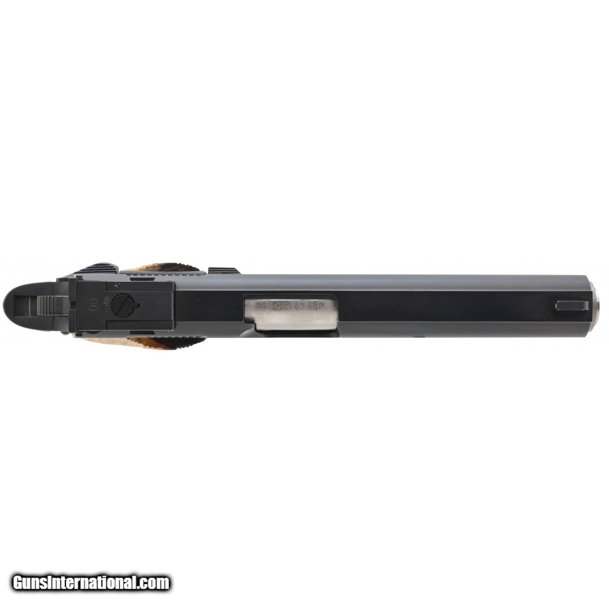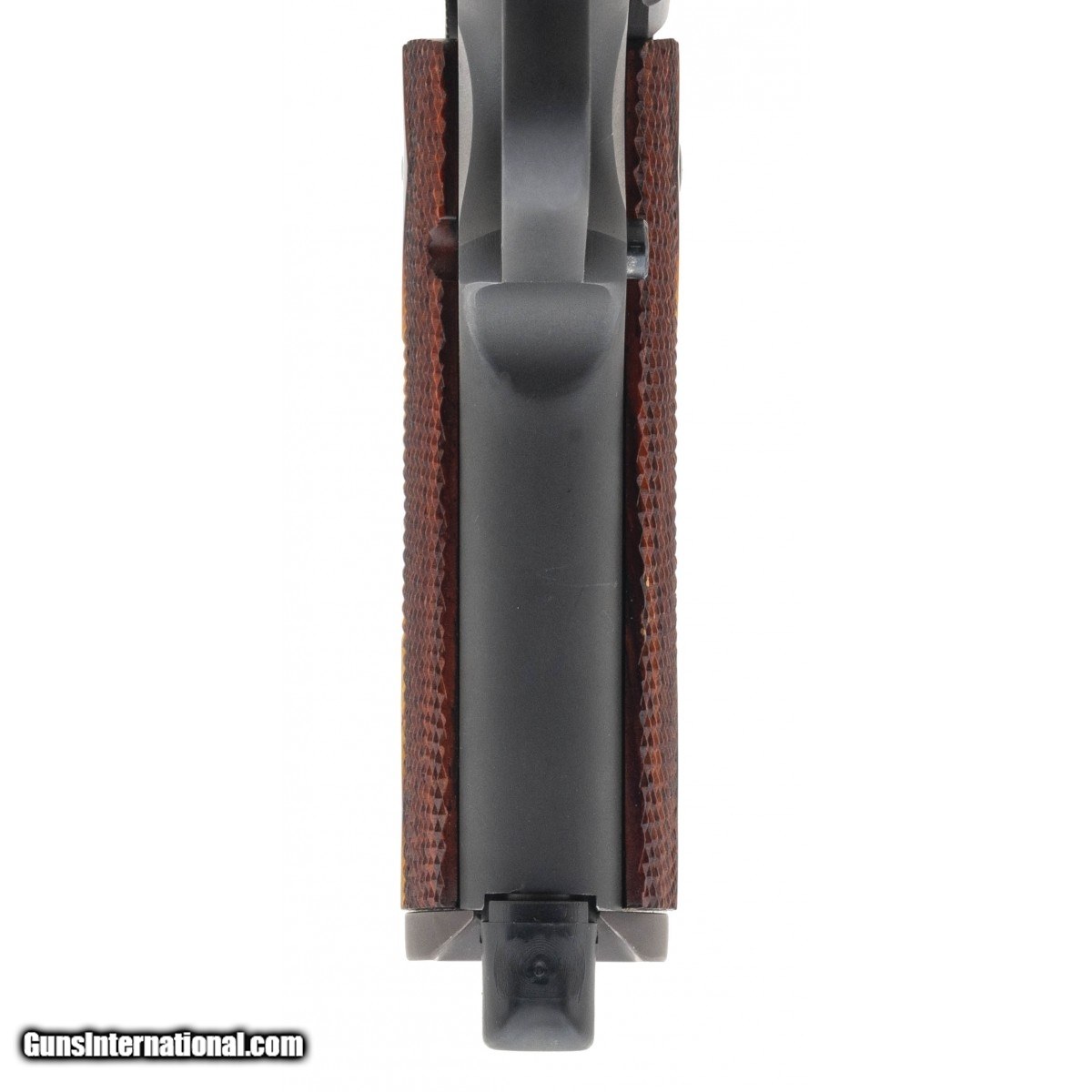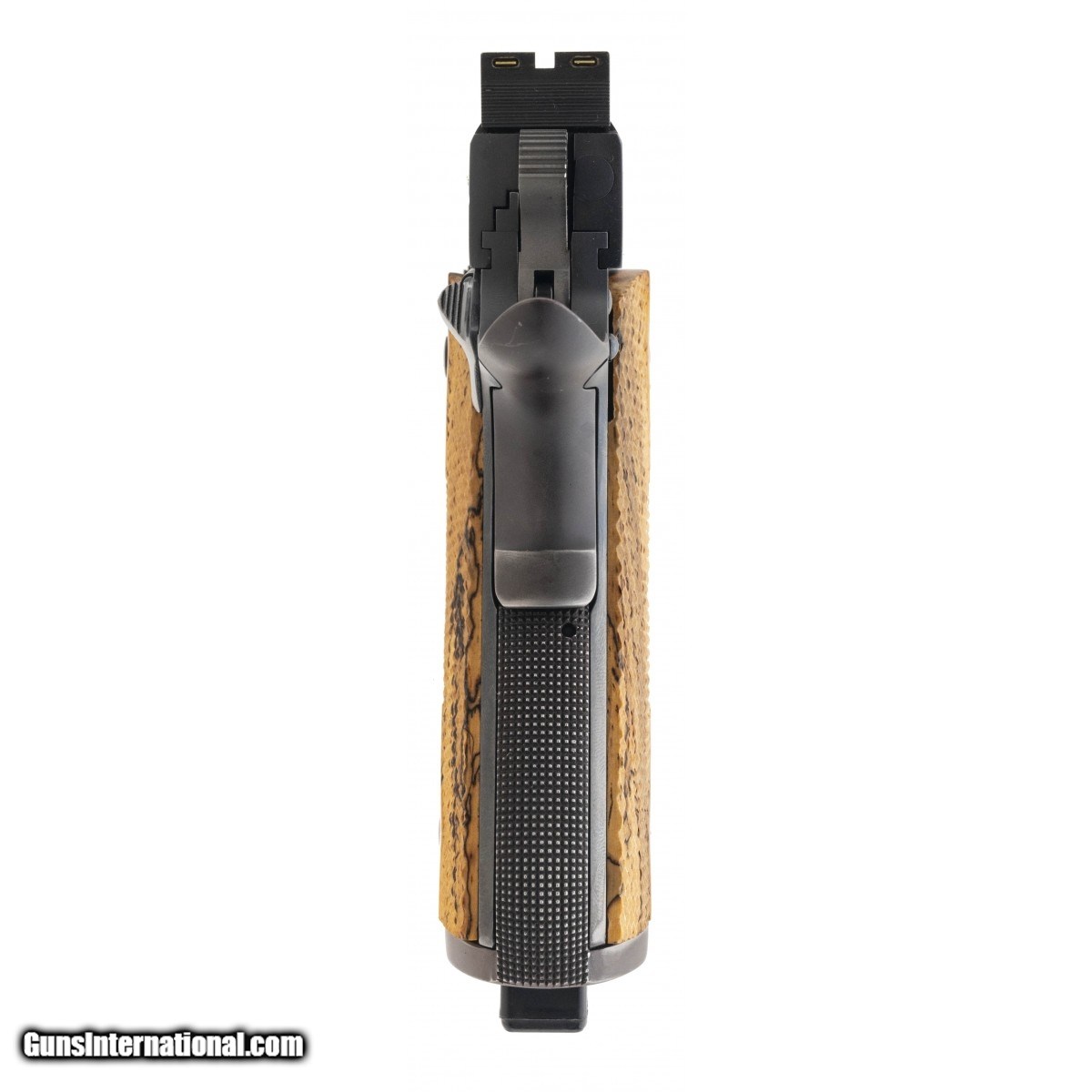 SN: FR09628E. 1990's vintage 5"" 1911 customized by well-known local gunsmith Eddie Jimenea as a combat carry gun, though it's not signed. Has a Bar-Stor barrel, Bo-Mar sights and the usual parts upgrades of the time. Has beautiful Esmeralda custom grips. Excellent condition.