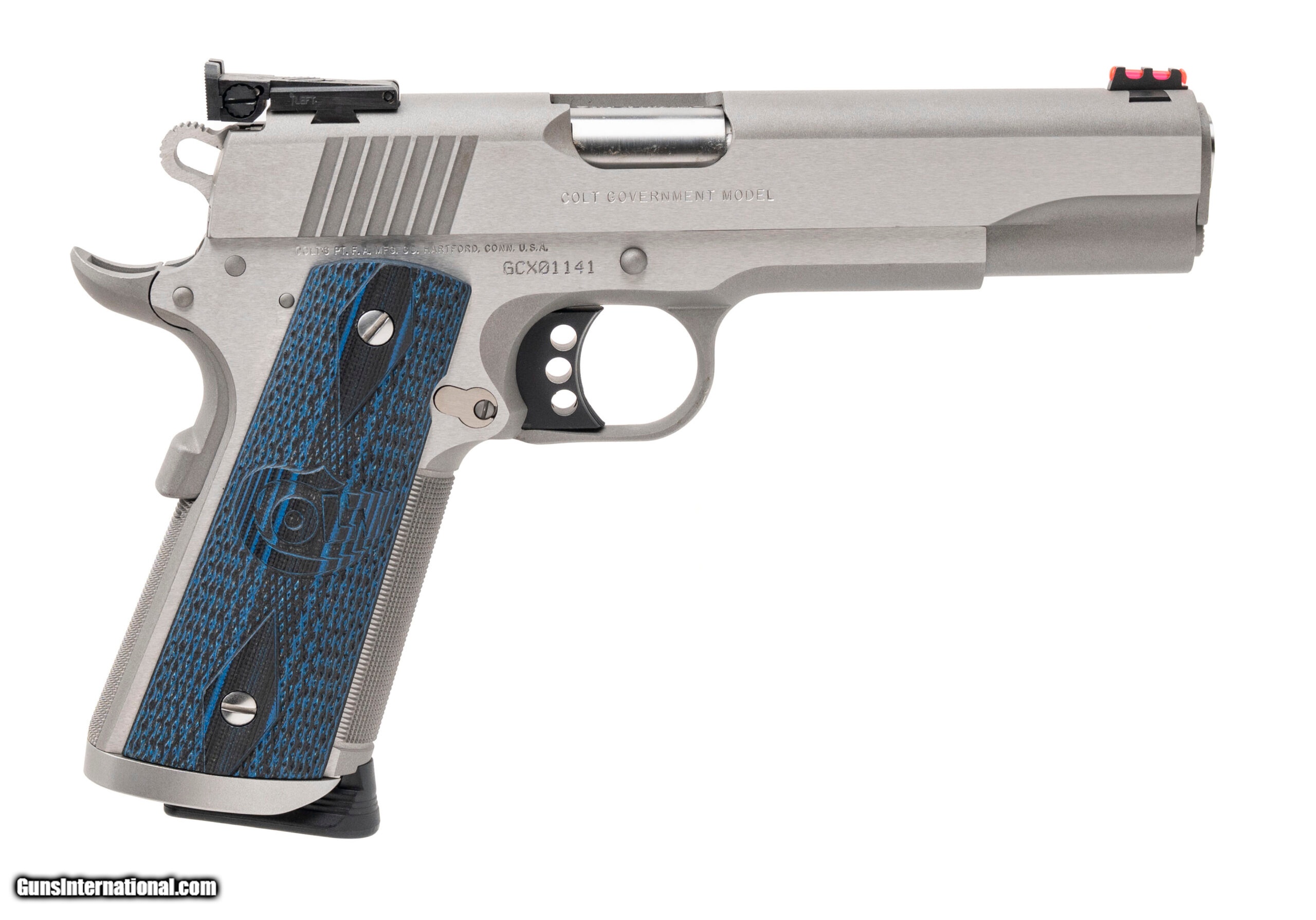 Description: "SN: GCX01141. Modern production, .45 Auto with a 5"" barrel. Bore is bright with strong rifling. Government size 1911 with target sights. Overall condition is near excellent. SOLD |