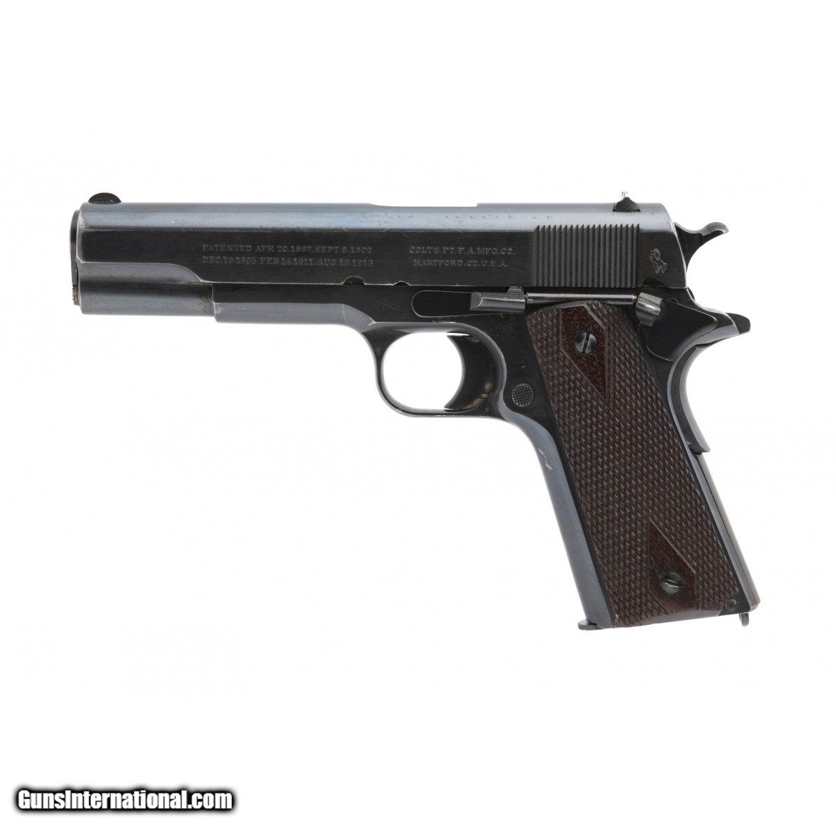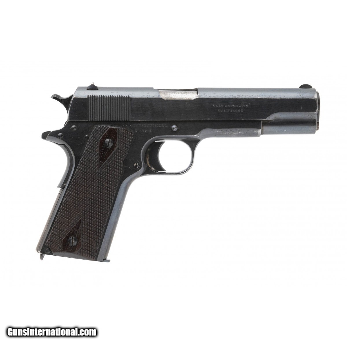 Description: "Serial C39214. Made in 1916. 45 ACP with a 5" barrel. Gun is in excellent original condition with 90% of the original blue. Grips are excellent. SOLD Curio/Relic: Yes |