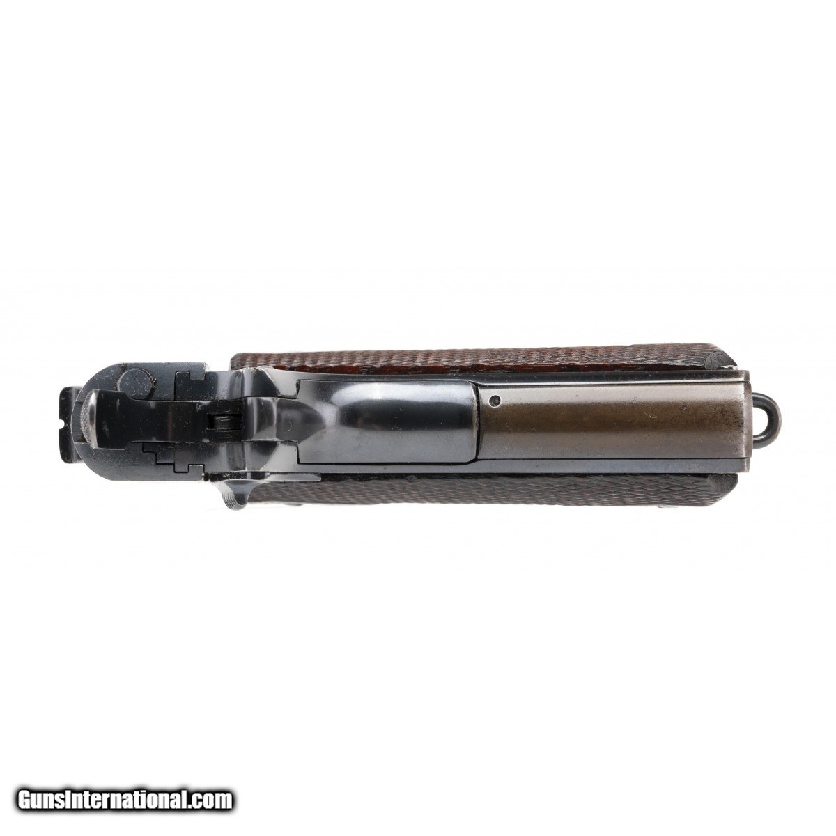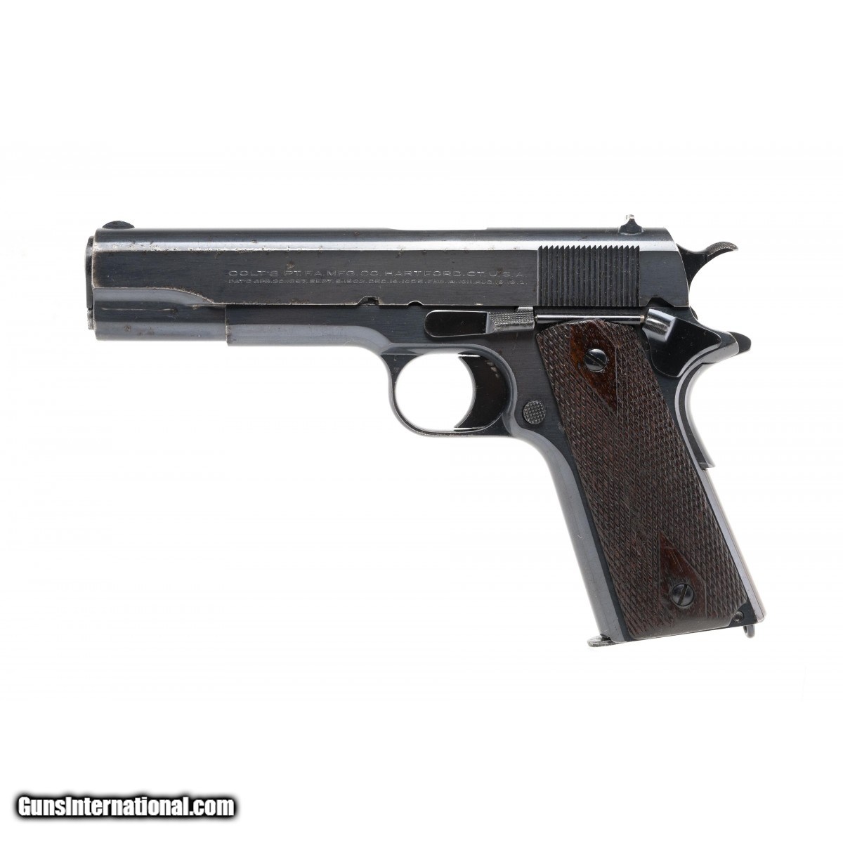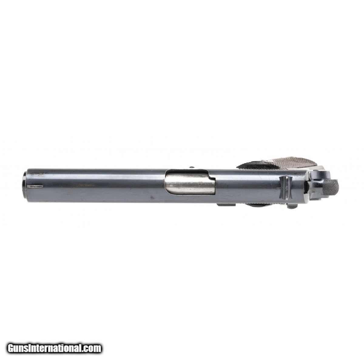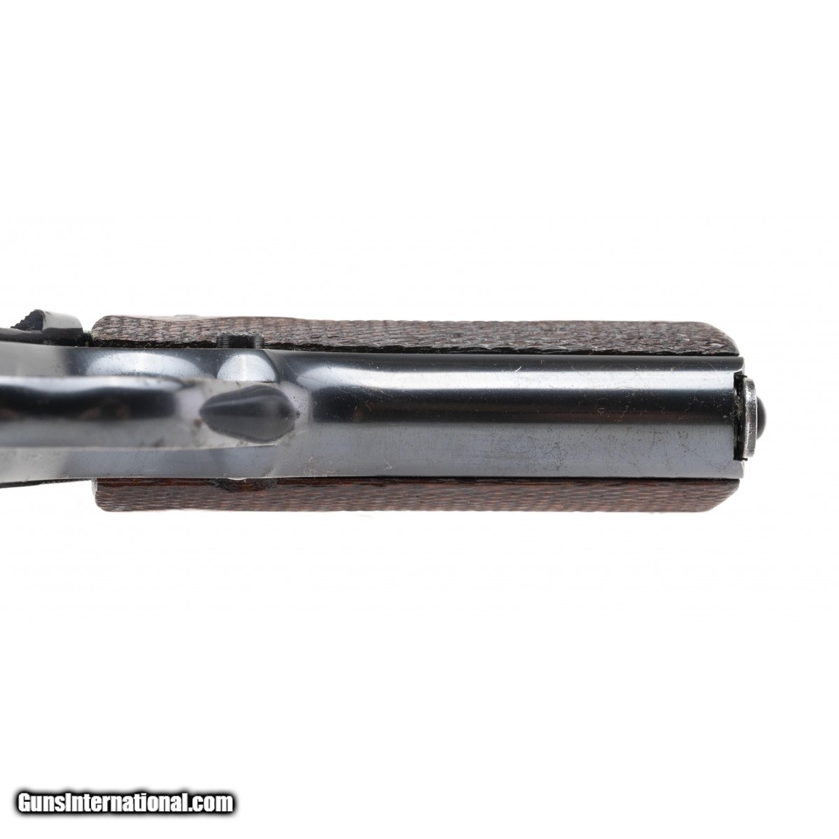 Commercial model made in 1922. Slide has some light pitting/etching on edges. Metal has approximately 95% original factory blue. Bore has strong rifling with some frosting. Grips are original and have some wear. Overall pistol is very good. A reasonably priced commercial model.