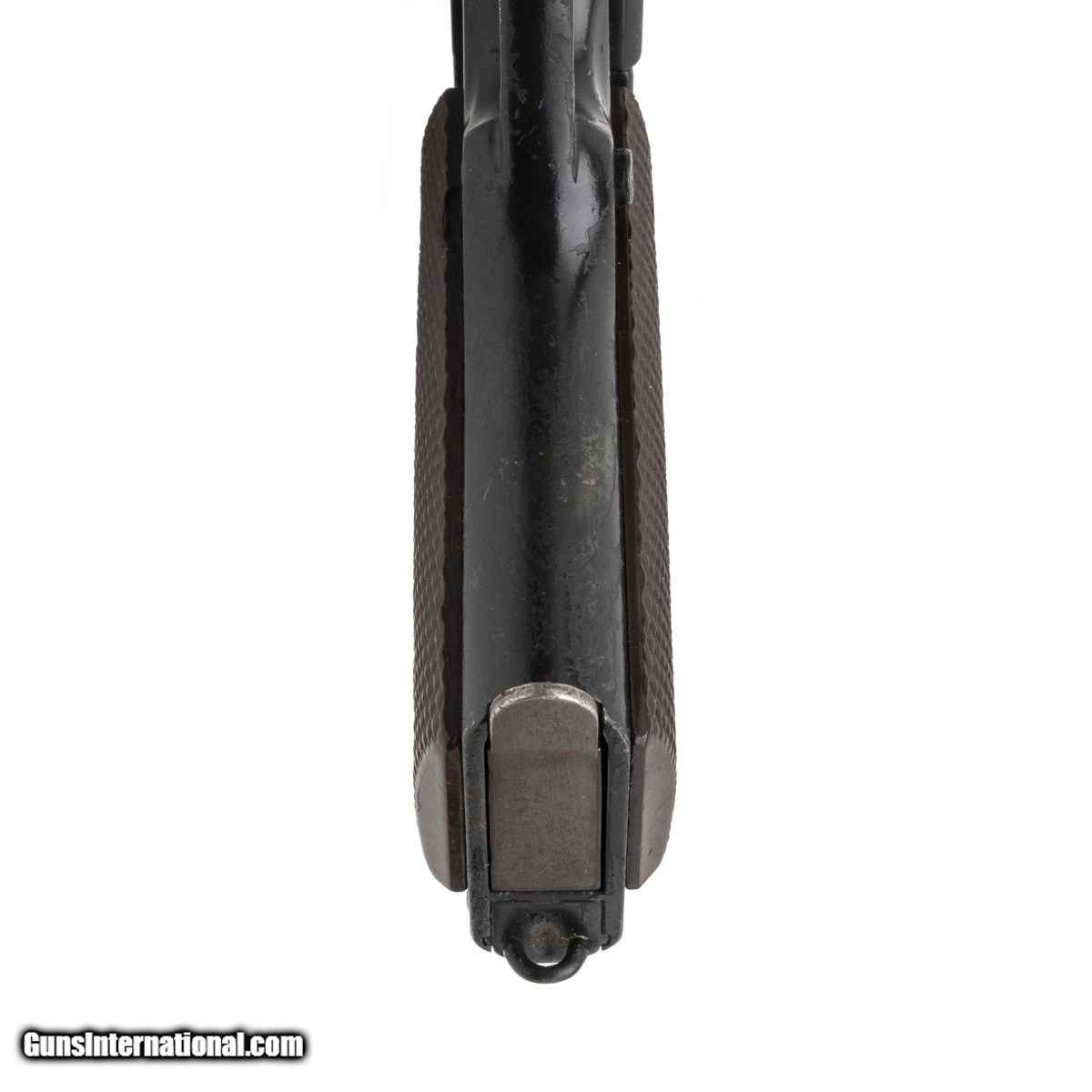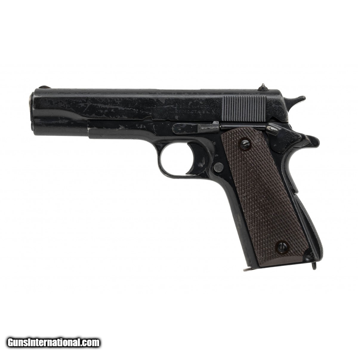 Description: " SN: C222025. Made in 1947 with a 5.03-inch barrel chambered for the .45 ACP cartridge. Overall condition is refinished with extensive wear on the slide & frame, but the bore is bright, the grips are in great shape & the gun is fully functional. Comes with one unmarked World War II production no-seam 7-round magazine. Consignment SOLD Curio/Relic: Yes |
