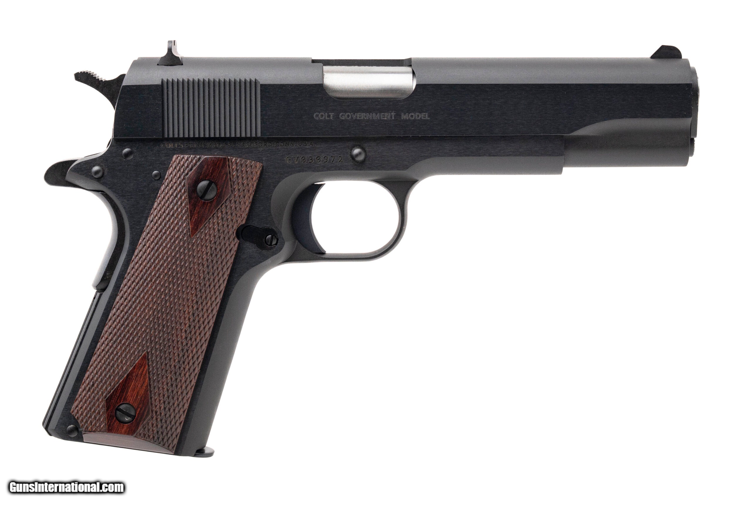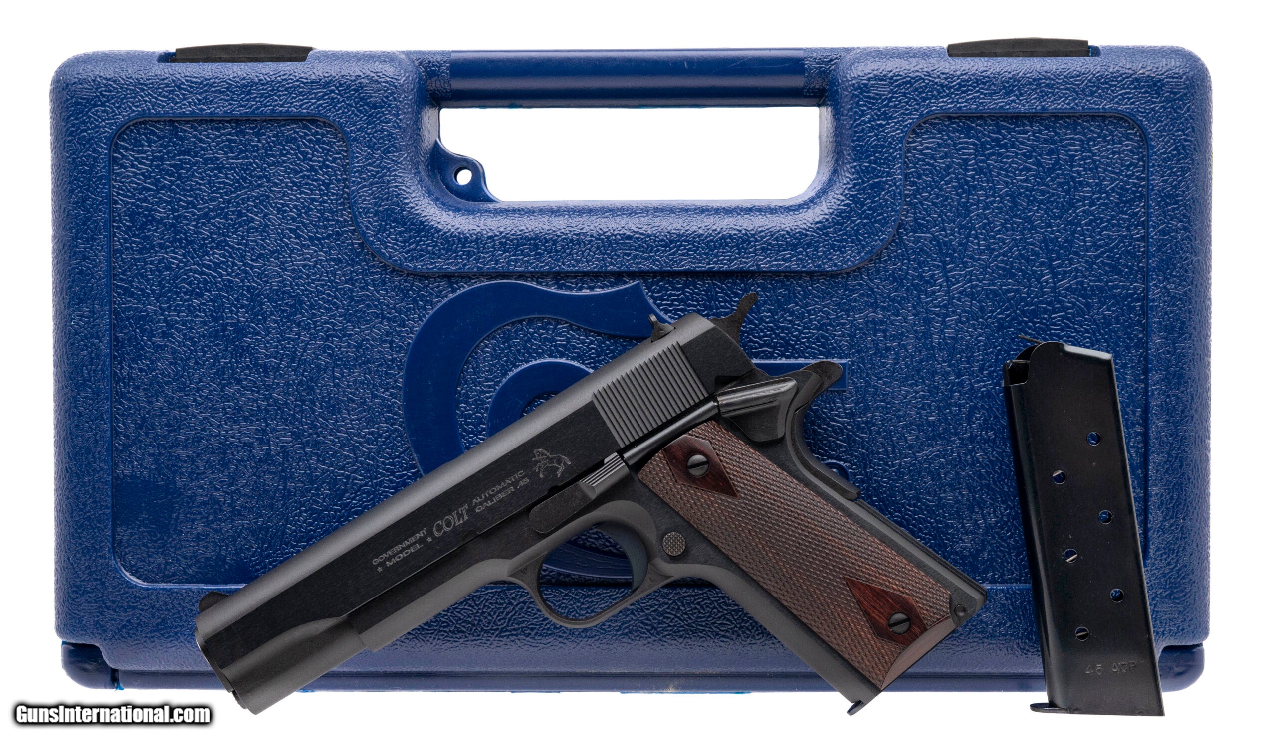 Description: "SN: GV030972. Modern production .45 ACP with a 5"" barrel. Blued steel classic 1911 pistol in excellent condition with case and extra mag. SOLD |