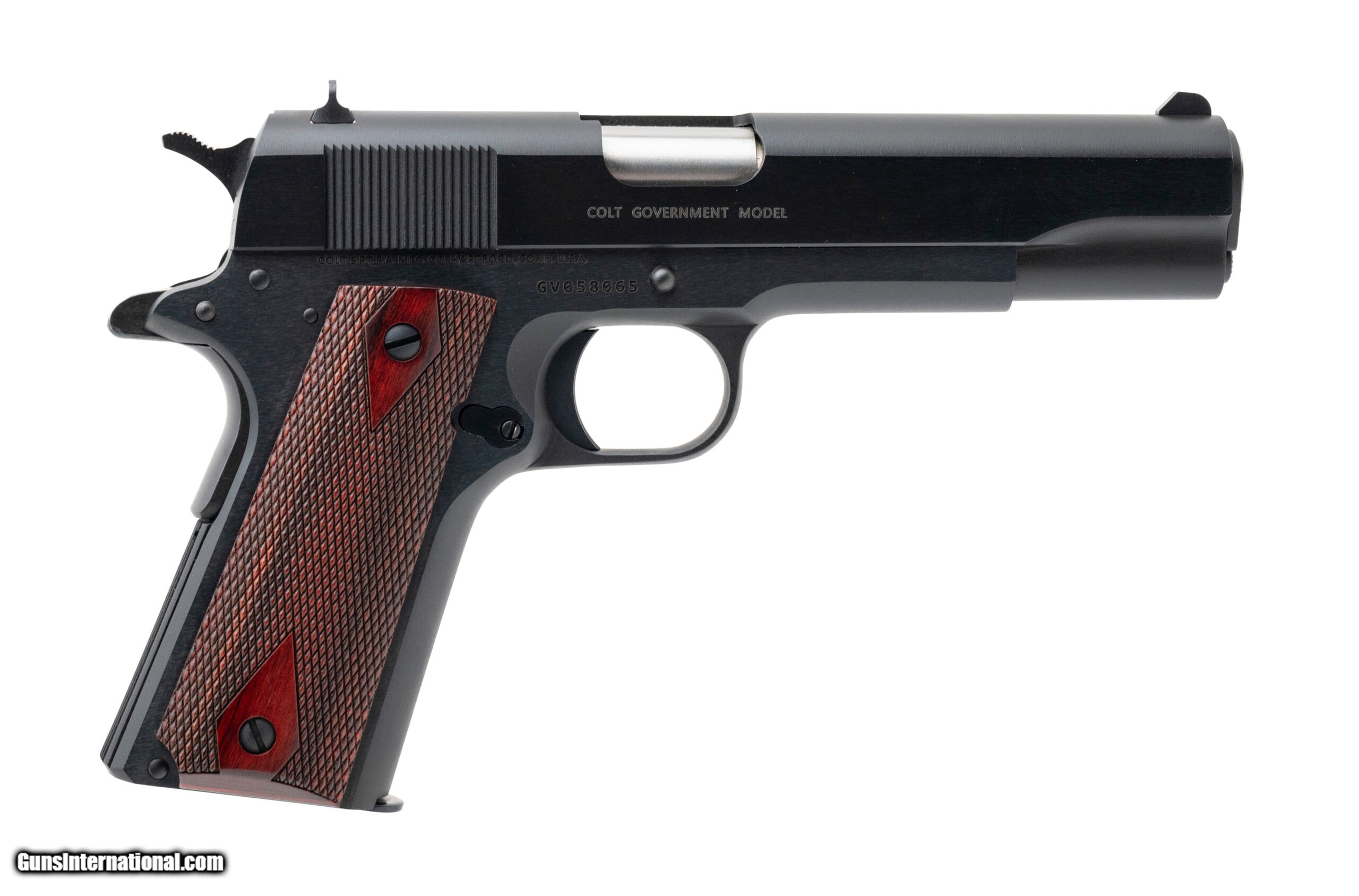 Description: "SN: GV058065). Modern production. .45 with a 5"" barrel. Bore is excellent. Series'70 1911. Finish is in very good condition with light wear noted on the grip safety. Grips are in excellent condition. Comes with case. Overall very good condition. SOLD |