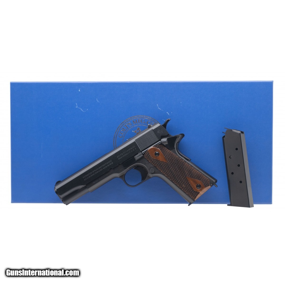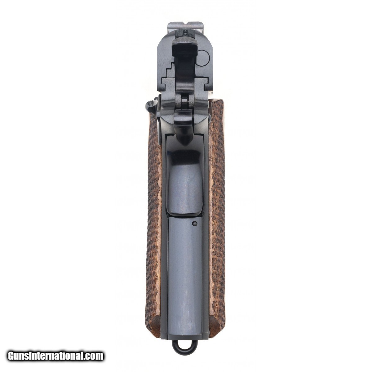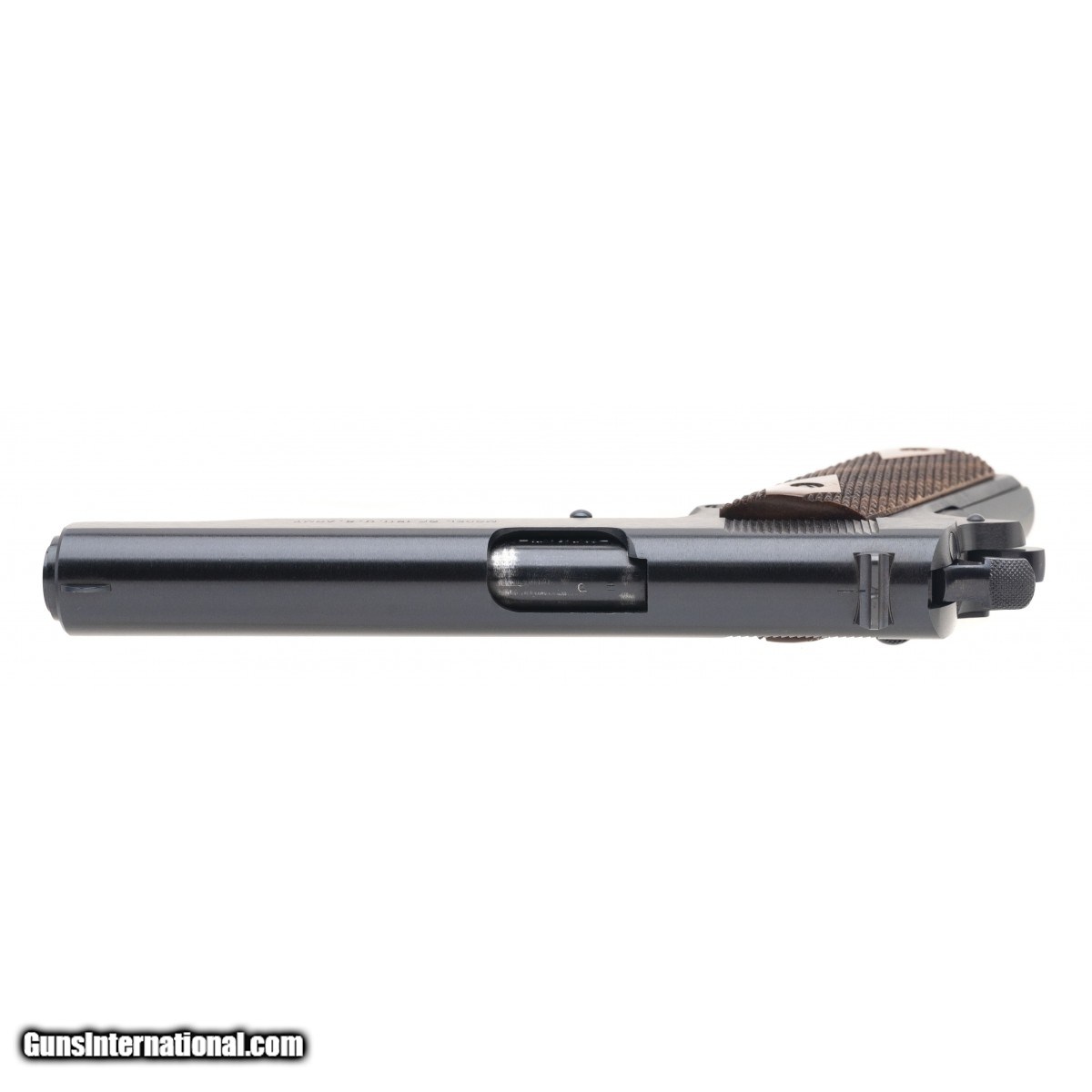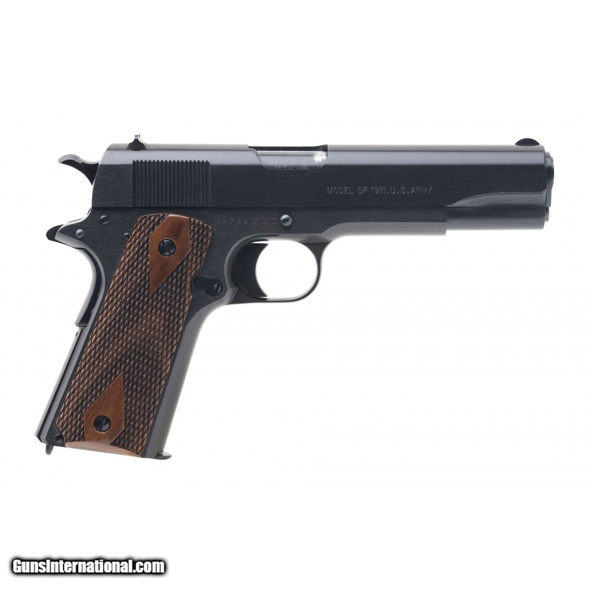 SN: 2724WWI. Made in 2008. .45 ACP with a 5"" barrel. Bore is excellent. World War I commemorative M1911. Left side of frame is stamped ""UNITED STATES PROPERTY"" with ""MODEL OF 1911. U.S. ARMY"" stamped on the right side of the slide. Black oxide finish with diamond cut wood grips. lanyard loop behind magazine well. Comes with box and extra magazine unopened. Overall excellent condition.
