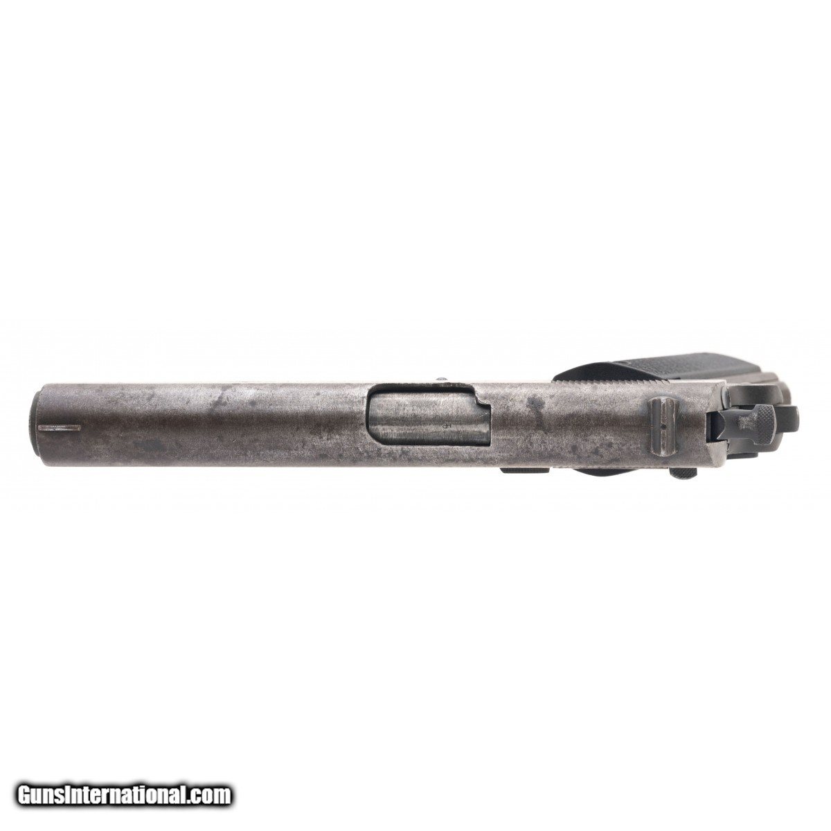 Description: " SN: 339127. Made in 1918, .45 ACP, 5"" barrel. Fair condition World War I era 1911 with an excellent bore. Slide finish is heavily worn & marked with a circle ""S"" on the right rear. Comes with one magazine & Magpul grips. SOLD Curio/Relic: Yes |