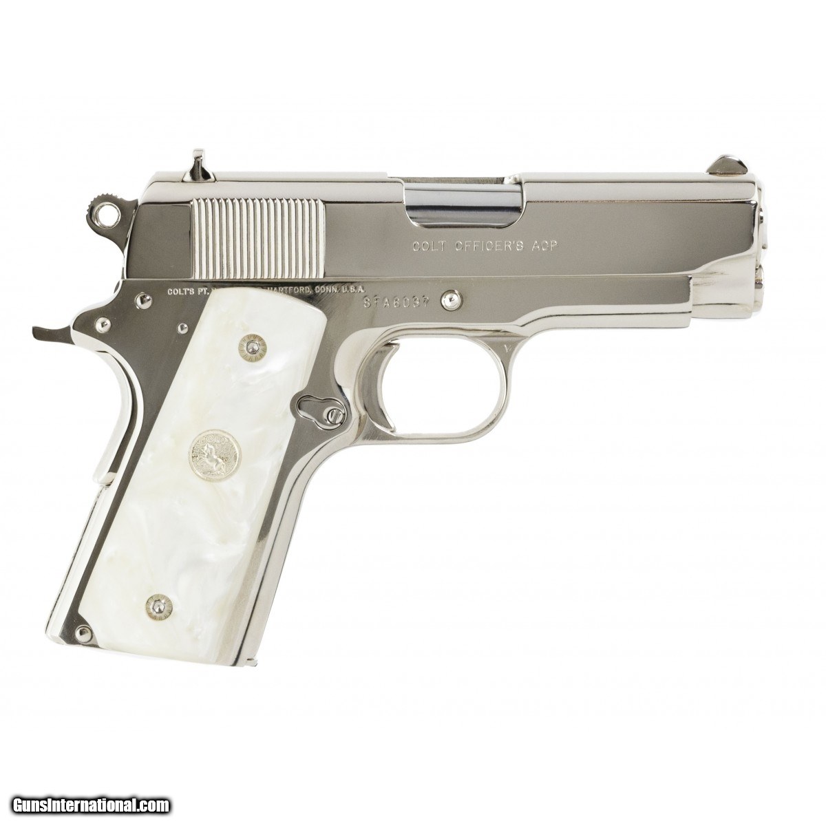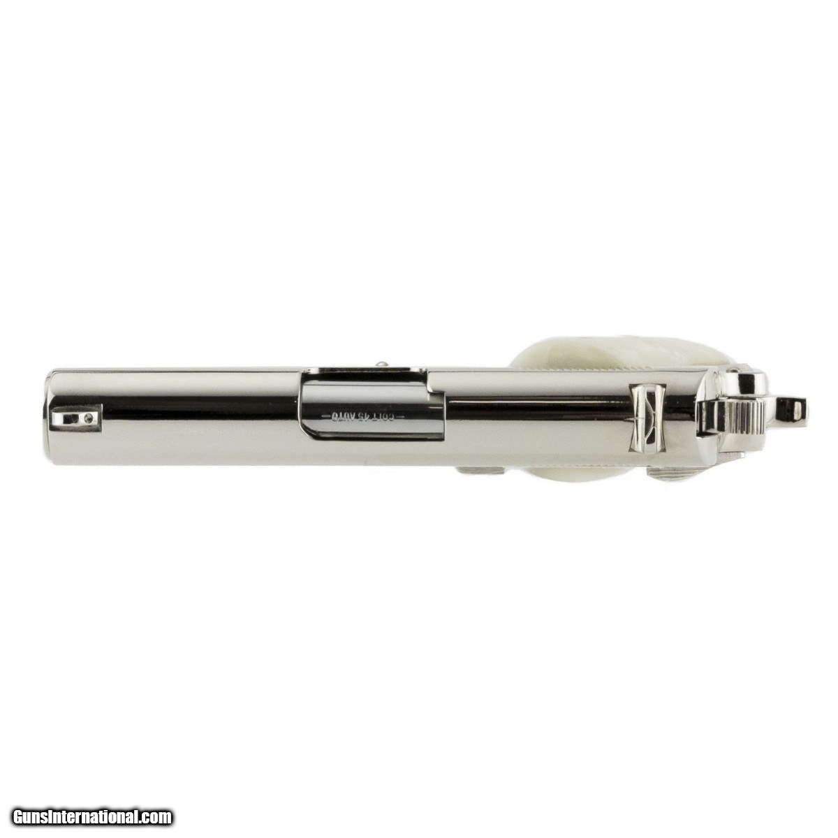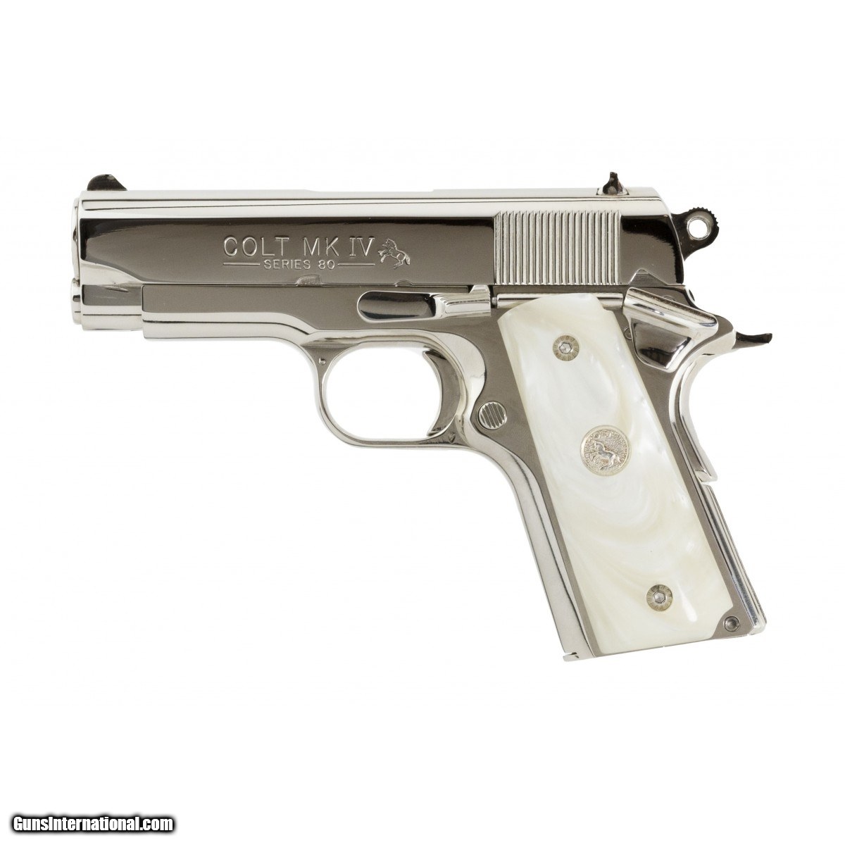 Description: " 3.5"" Compact 1911 customized with bright nickel finish and fancy grips. Excellent condition. A beautiful carry gun. SOLD |