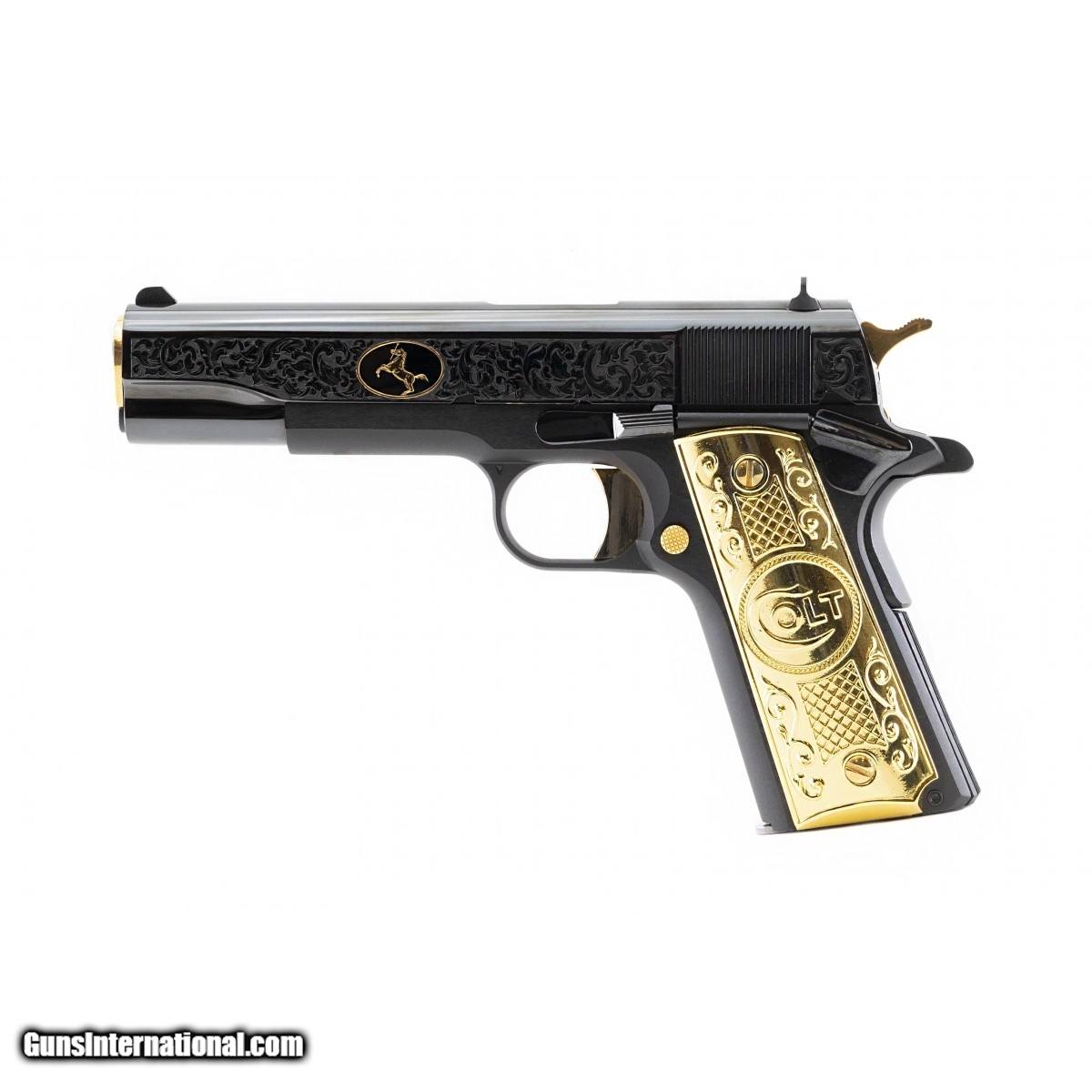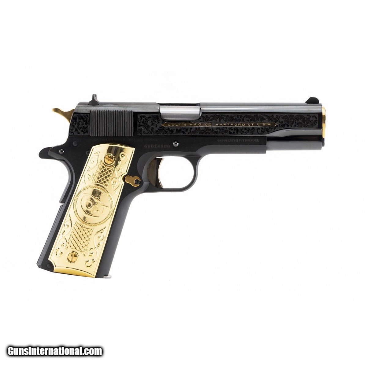 Deluxe engraved and gold special edition .38 Super. Has polished blue slide and fancy grips. New
