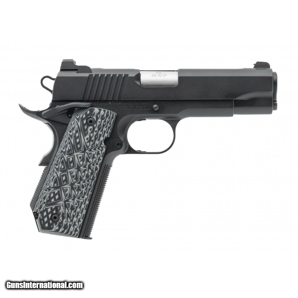 SN:GN03200. Modern production, .45 ACP with a 4.25"" barrel. Bore is in excellent condition. Full size 1911 frame with, G10 grips, brass bead front sight, bobtail frame and ambidextours thumb safety. Overall condition is excellent.