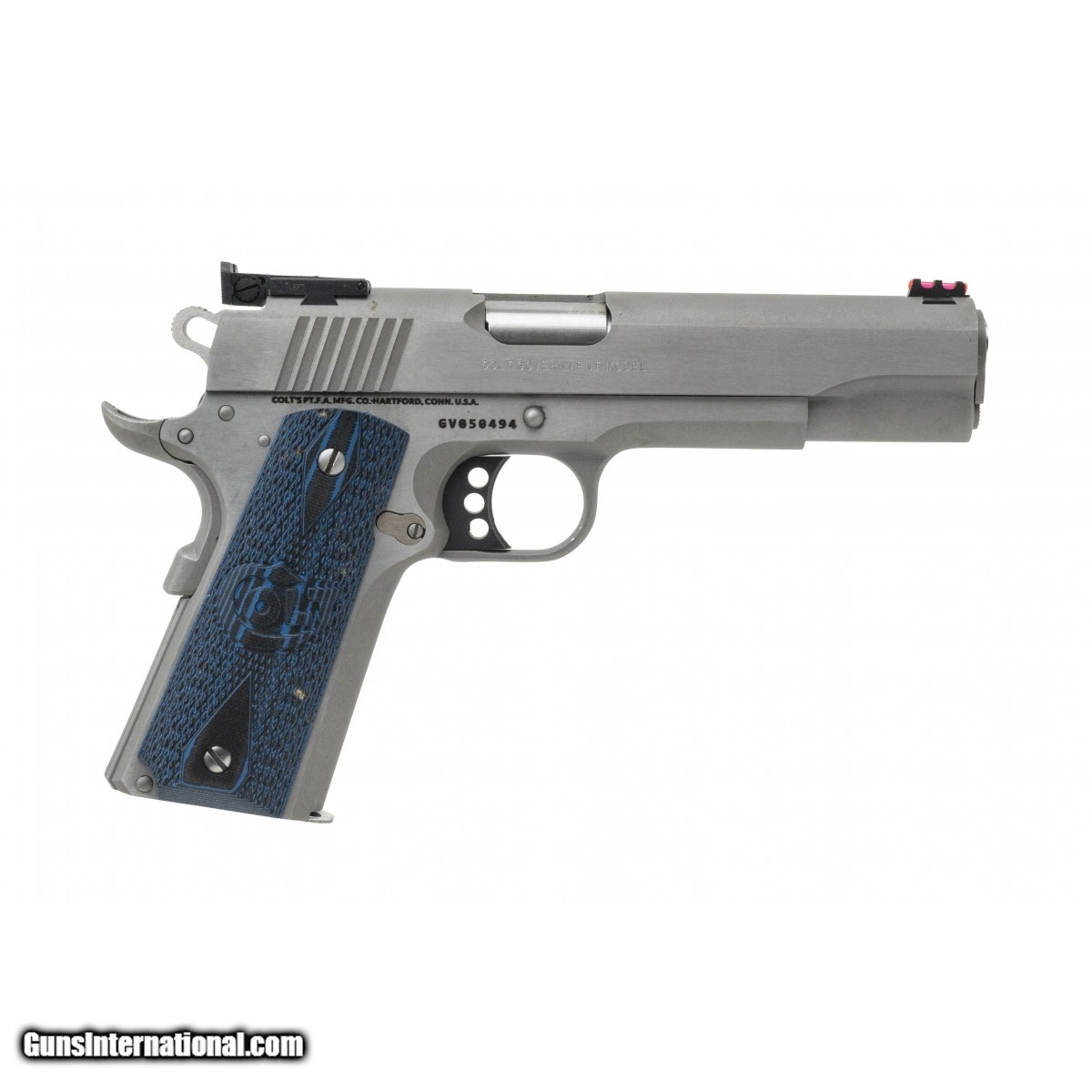 Description: " Full size 1911 with a 5"" barrel target sights, blue G10 grips and stainless frame. NEW. UPC:098289112118. (STOCK PHOTO) SOLD |