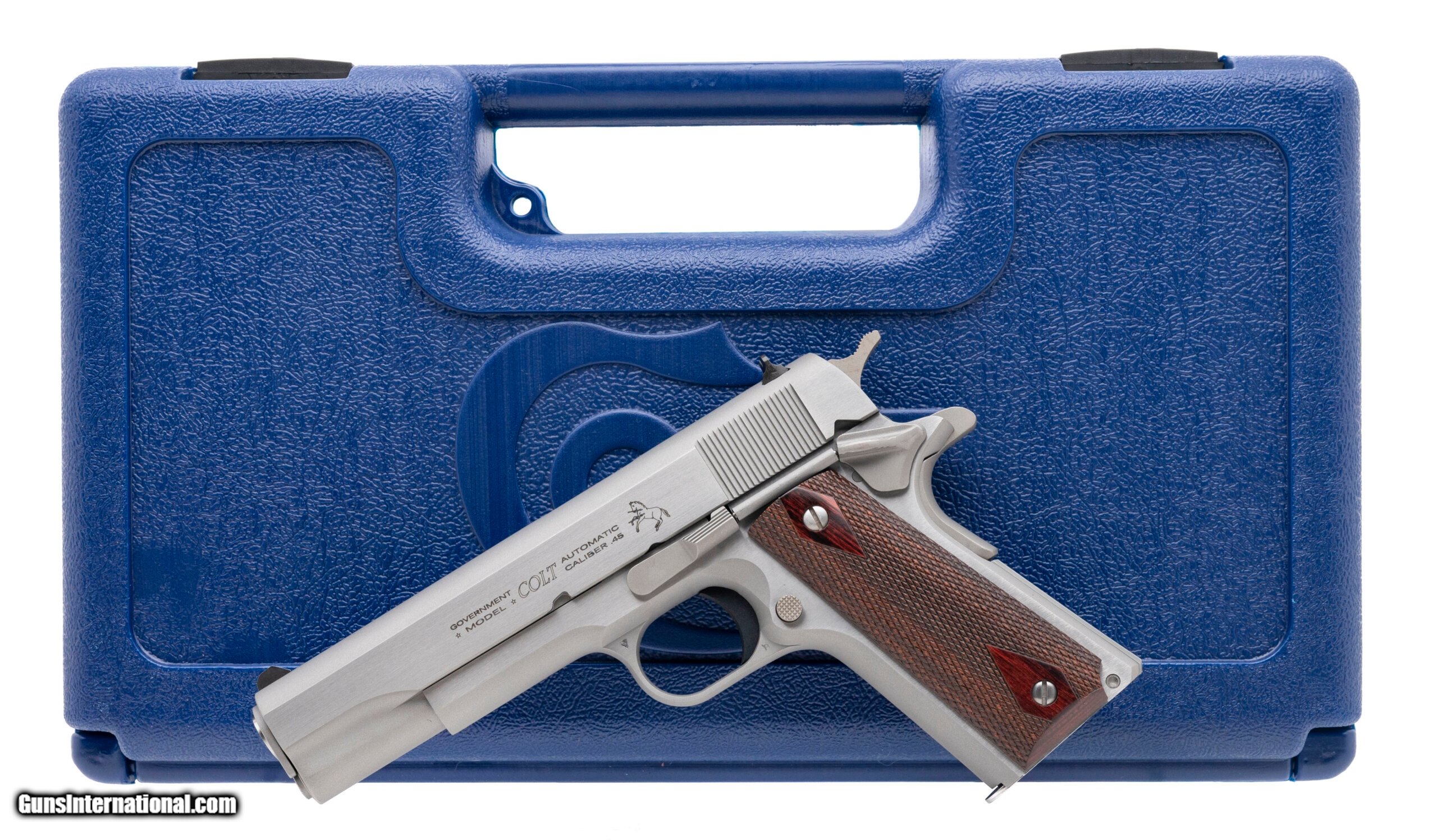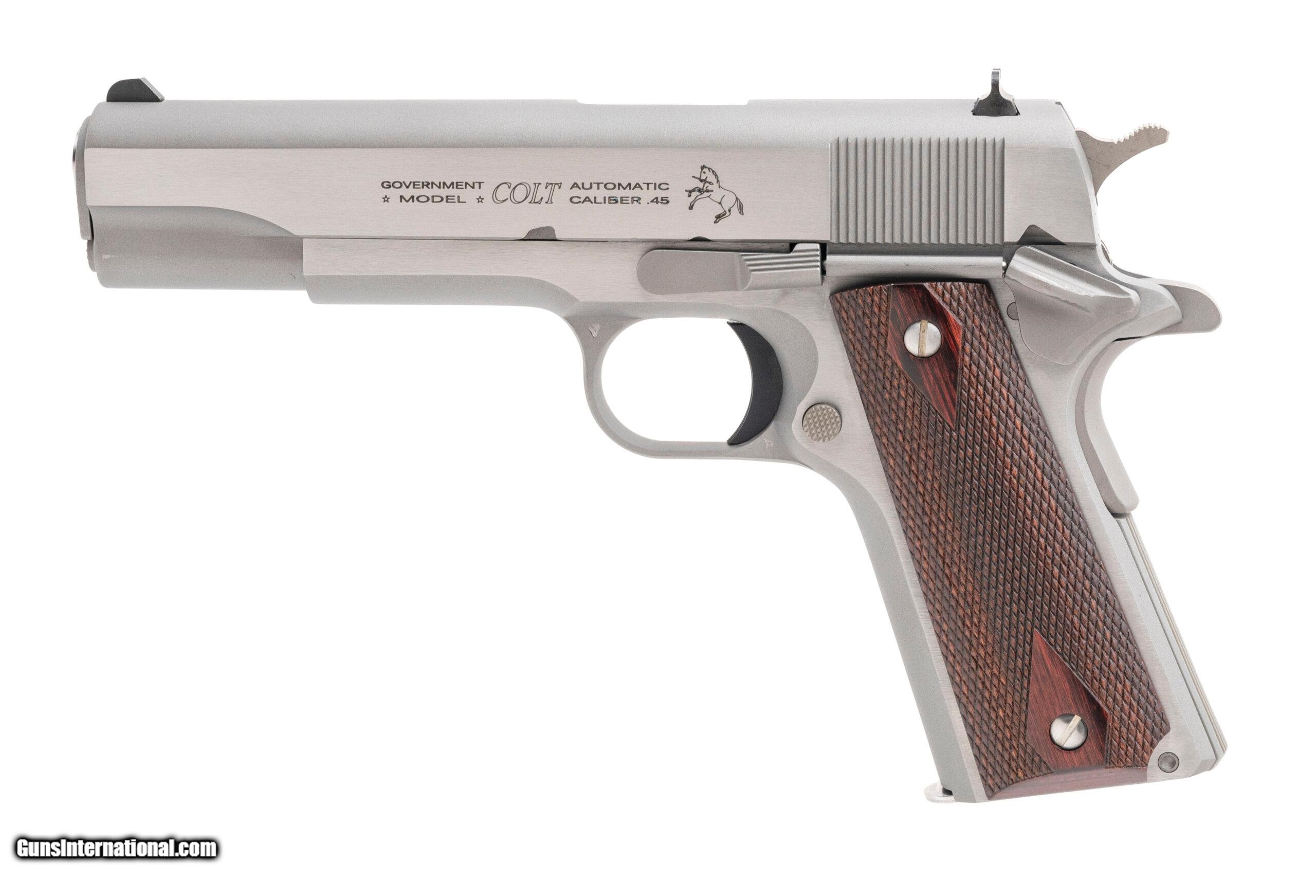 Description: "Colt Government 1911 Pistol. .45 ACP with a 5"" barrel. Colt Government 1911 pistol with a steel frame, Diamond wood grips, and a spurred hammer. New. UPC: 098289112224 (STOCK PHOTO) SOLD |