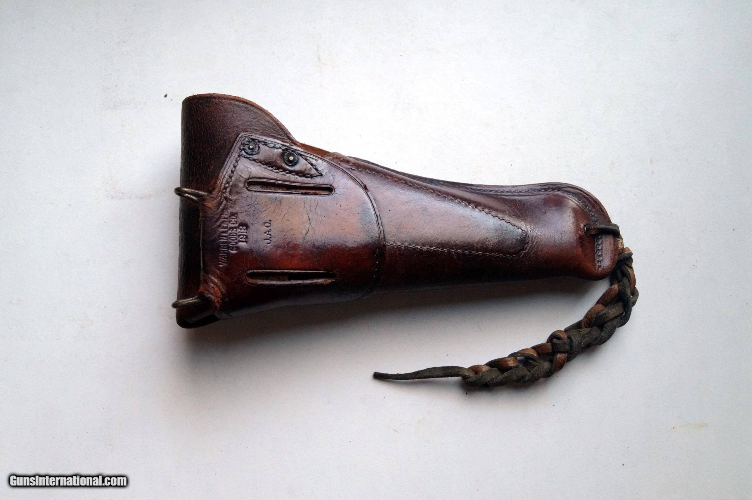 Description: THIS IS A 1911 COLT MFG. 1918 " BLACK ARMY " SEMI AUTOMATIC PISTOL, .45 ACP. THE PISTOL IS IN GOOD ORIGINAL CODITION. NUMBER MATCHING, VERY GOOD BORE AND GRIPS, MECHANICALLY CORRECT AND TIGHT. THE RIG CONSISTS OF THE PISTOL, 1 ORIGINAL MAGAZINE, 1 ORIGINAL 1918 DATED HOLSTER, 1 MAGAZINE POUCH DATED 1918 WITH ORIGINAL WWI FIRST AIR KIT. A VERY NICE 1911 "BLACK ARMY" RIG. SOLD Curio/Relic: Yes |