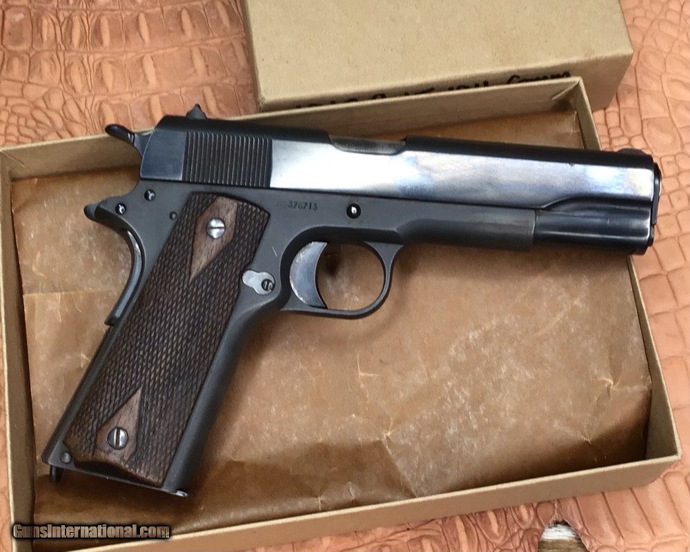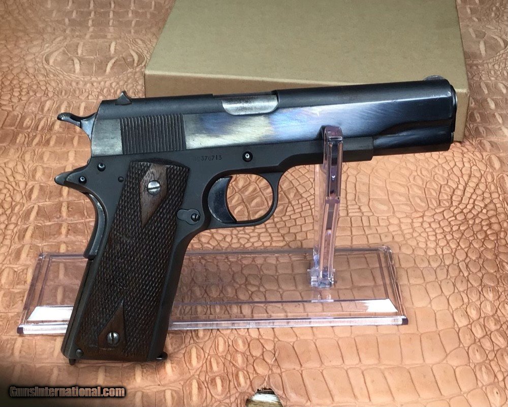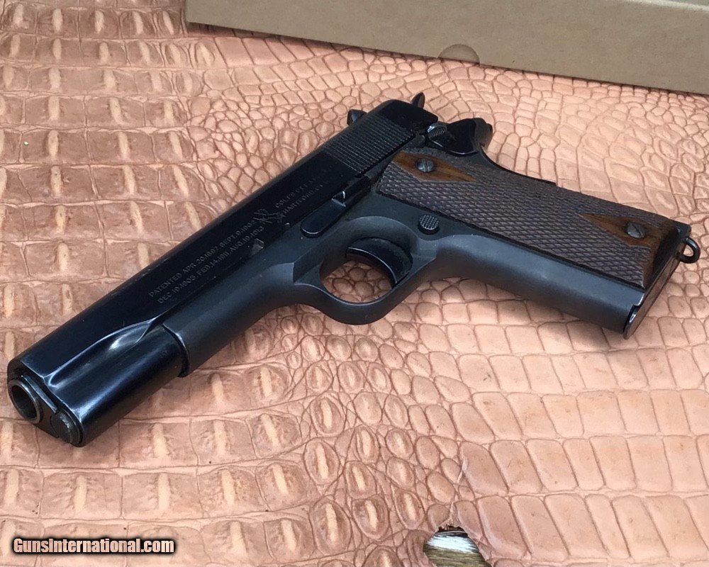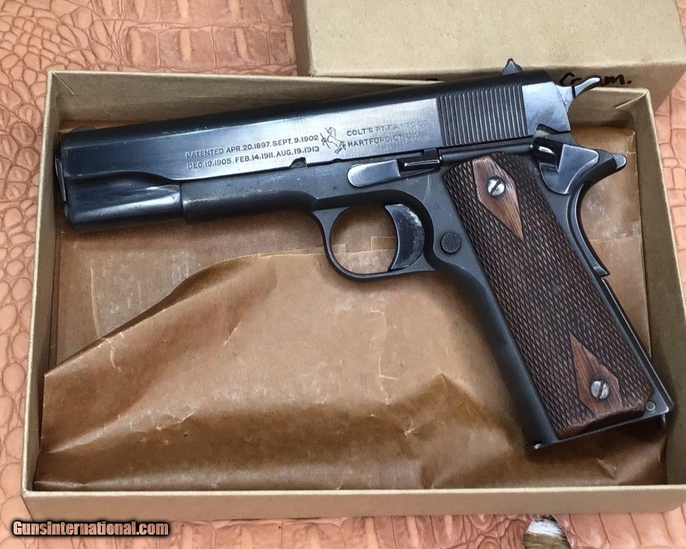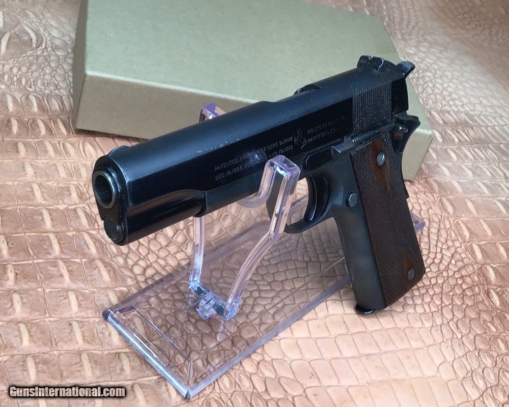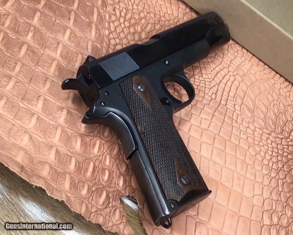 Description: 1918 Colt Model 1911 chambered in .45 acp in very good condition with commercial markings. Original Diamond grips in very good condition, one magazine, match grade barrel, fixed sights. Tight operation with great trigger. Comes in Kraft box. Add 3% if paying with credit card. Free shipping for US Veterans and retired Law Enforcement Officers. God Bless America from a proud American, and a Viet Nam Vet , thankful for our freedoms.. paid for by the Blood ,Sweat and Tears of our brave men and women in uniform. Ten Below Firearms is a Veteran owned and operated business. We specialize in out of production models of high quality firearms. We love to ship! We ship to all states where legal, just give us a call! Handguns normally ship for $35 and Long guns for $45 up to $75 for extra length long guns. That's 2-3 day USPS Priority shipping, Delivery conformation and with tracking number. Optional Postal insurance is additional $1.70 per $100 and highly recommended. We are OPEN BY APPOINTMENT ONLY FOR IN PERSON VISITS, We trade, sometimes. Layaway:If needed we offer a 60 day layaway program. Terms, 1/3 of purchase price down, 1/3 due in 30 days, and the final third to include card fees and shipping due at 60 days. Funds are non transferable and non refundable .Layaway is not available on negotiated prices. SOLD Curio/Relic: Yes Handgun Caliber: .45 ACP (.45 Auto) Manufacturer: Colt Model: 1911 Serial Number: 376713 Barrel Length: 5 inch Condition: Very good Metal Condition: Very good Wood Condition: Very good Bore Condition: Very good Action: SA Triggers: SA Finish: Blued Sights: Fixed Manufacture Date: 1918 Case: Kraft box Item Location: Mn |