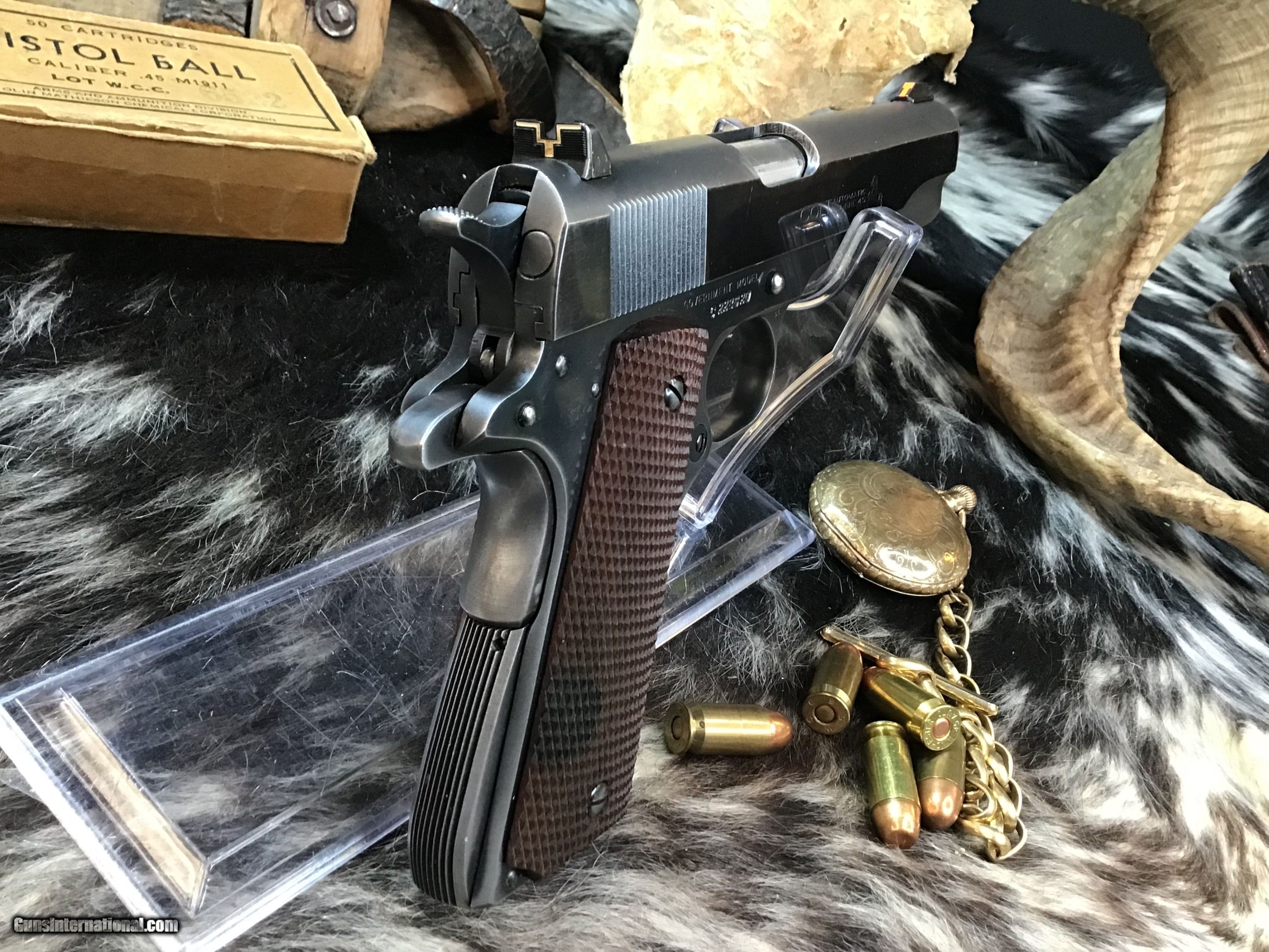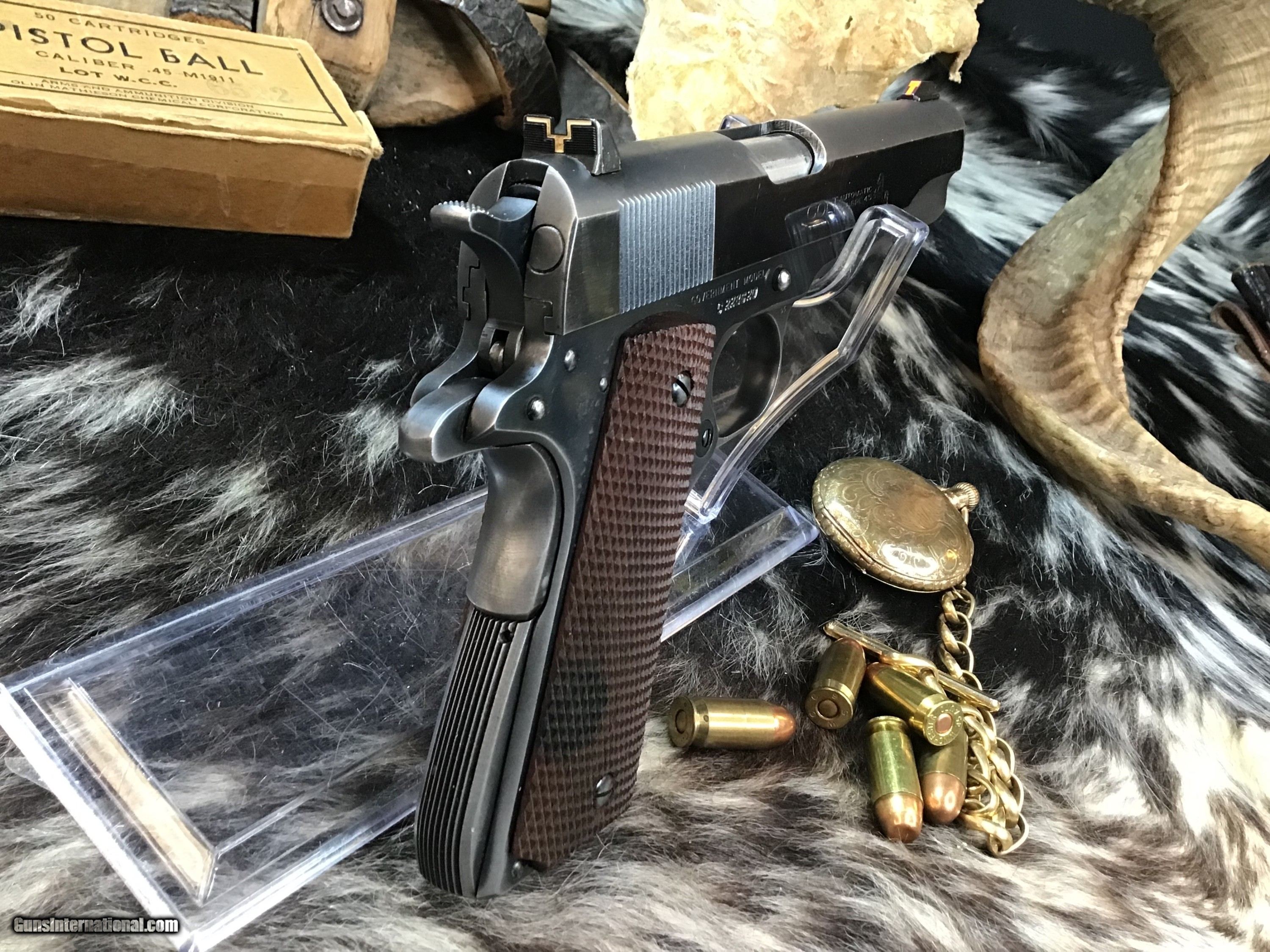 Description: 1947 Mfg. Colt Government Model 1911 Civilian wearing a 5" barrel and full checkered Walnut grips . Original Blued finish remains at 95% or better, with fixed target sights. Cycles as intended, perfect vintage carry 1911 or a castle defender. Comes in Colt replacement box with manual and owners papers. Own the original built by Colt Craftsmen in Hartford Ct. Add 3% if paying with credit card. Free shipping for all US Veterans. God Bless America from a proud American, and a Viet Nam Vet , thankful for our freedoms.. paid for by the Blood ,Sweat and Tears of our brave men and women in uniform. Ten Below Firearms is a Veteran owned and operated business. We specialize in out of production models of high quality firearms. (I prefer to be called a Collector because it sounds a lot nicer then a Hoarder.) We love to ship! We ship to all states where legal, just give us a call! Handguns normally ship for $50 and up, and Long guns for $50 and up for extra length long guns. That's 2-3 day FedEx shipping, Delivery conformation and with tracking number. Optional insurance is additional $1.85 per $100 and highly recommended. Long guns shipped FedEx Ground unless buyer pays up charge for air. * If you live in Minnesota and want to drive to see a gun, reach out to me to discuss making an appointment – ALL GUNS ARE LEGALLY TRANSFERRED – there are NO EXCEPTIONS. All payments sent via USPS Priority mail must be received within FIVE DAYS of date of purchase or item will be relisted for sale. **PROPS MAY BE USED FOR PHOTOS, PROPS ARE NOT INCLUDED WITH THE SALE OF THIS FIREARM** Thank you! Please call the store to complete your purchase : 651-303-7769 Layaway:If needed we offer a 60 day layaway program. We offer FREE 60-day layaway. Buyer must pay at least 1/3 down, 1/3 Due in thirty days and the final balance due in sixty days. On all uncompleted layaways, all payments made will be non-refundable. The 60 days begins the day the buyer commits to buying the gun. 90 day layaway is available with 1/2 down, via phone. All layaway sales are final. Layaway is not available on negotiated prices. Please Check us out at tenbelowfirearms And Please Send An Email or Call If We Can Assist in SELLING OR BUYING Your Collection. Friendly honest service, Fair Pricing, and top prices paid out for your interesting firearms. We also will take classic cars and trucks on trade. We also will take Gold & Silver on trade. Trade Opportunities: Premium Trades Considered: At Ten Below Firearms we welcome discussions of trades, especially if you have high-quality firearms. This could be an excellent opportunity to upgrade or diversify your collection. RETURN POLICY:. All firearms EXCEPT ANTIQUE FIREARMS come with a 3-day from the time your firearm reaches your receiving FFL. - NON-FIRING, NON-MESSING-WITH (REMOVING PARTS, MOUNTING OPTICS, CLEANING, DETAIL STRIPPING) inspection / return privilege to cover any issue that was NOT noted in the written description -OR- shown in the photos of the item . Inspection is based on a visual review of the gun to confirm the gun is in the condition stated. The inspection period begins at time of delivery to your dealer. It is your responsibility to inspect the gun in this time frame and inform Ten Below Firearms by phone or e-mail, of any such issue. You MUST get ahold of us before just returning a firearm. In the case of a return, buyer pays all shipping. Please ask any questions you may have prior to purchasing one of our firearms for sale listings. Antique guns are sold as/is and are in no means under any warranty or guarantee to function. Return policy only applies to used firearms. No partial refunds. It is always necessary for ALL guns to be checked by a qualified gunsmith before attempting to fire. Always use factory loaded ammunition in your firearms. Once the gun has been transferred on a 4473 there WILL BE NO RETURNS, PERIOD. All Antique firearms are sold as collector’s items only and are under no circumstances warrantied as to shooting safety, function or accuracy. The purchaser is solely liable / responsible for determining that a gun is safe to shoot. Most of The firearms offered in our listings have not been test fired, but have been given a visual inspection only for firearm sale description purposes. It is our recommendation, should you choose to shoot an antique firearm purchased from us, have it thoroughly inspected by a qualified gunsmith before firing. By purchasing the purchaser agrees to hold the seller harmless against damage, injury, or death caused by defective merchandise or actions that are the fault or error of the purchaser. Curio/Relic: Yes Handgun Caliber: .45 ACP (.45 Auto) Manufacturer: Colt Model: 1911 Government Model Serial Number: C228620 Barrel Length: 5” Condition: Excellent Metal Condition: Excellent Wood Condition: Excellent Bore Condition: Excellent Barrel Type: Semi Auto Action: Semi Auto Triggers: SA Finish: Blued Sights: Fixed Manufacture Date: 1947 Case: Box Item Location: Mn Grips: Checkered Walnut Price: $3,155.00 Contact Seller |