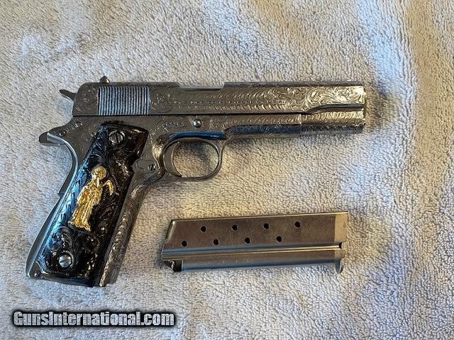 1952 Colt 38 Super custom engraved, Grim Reaper