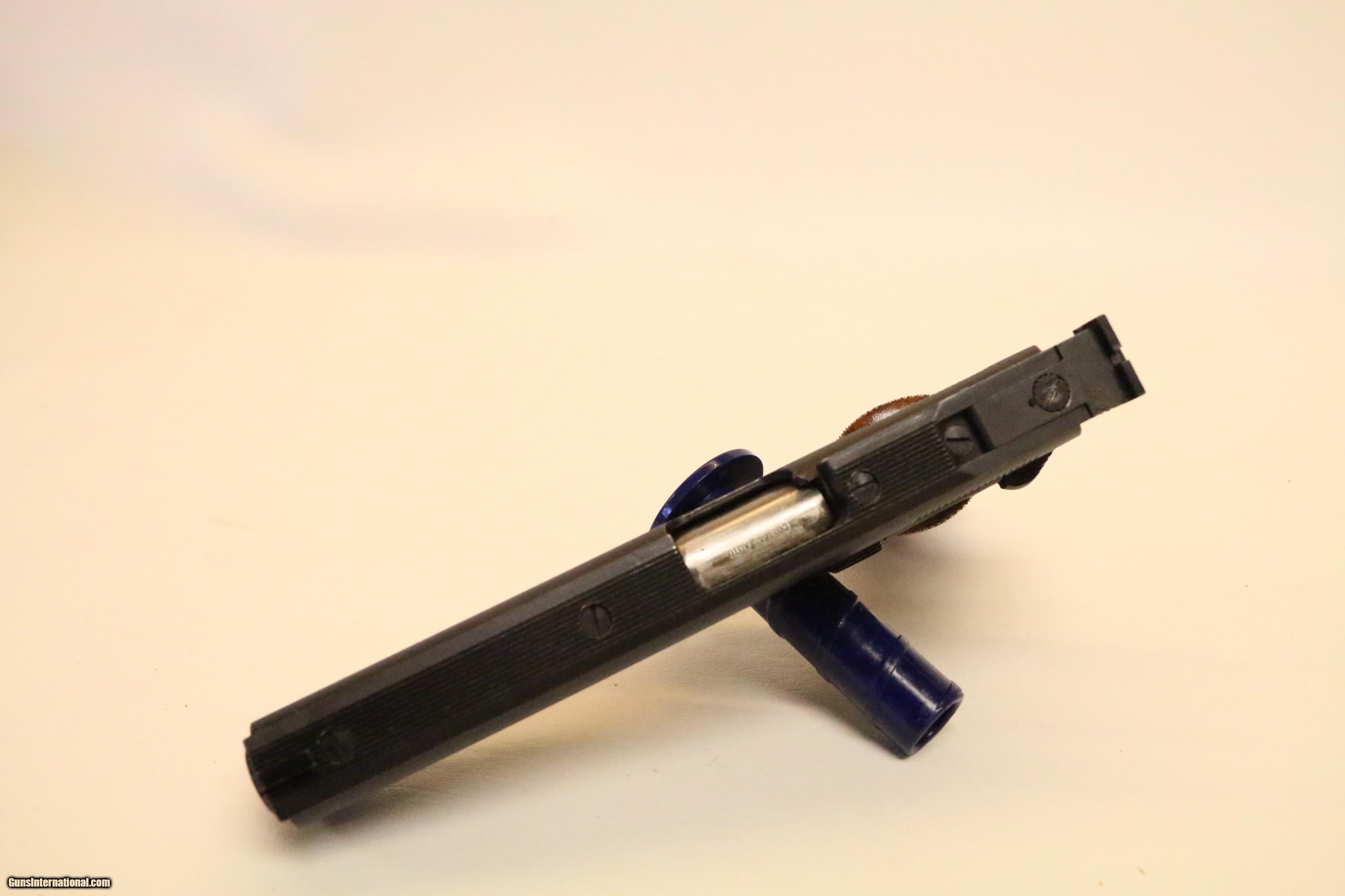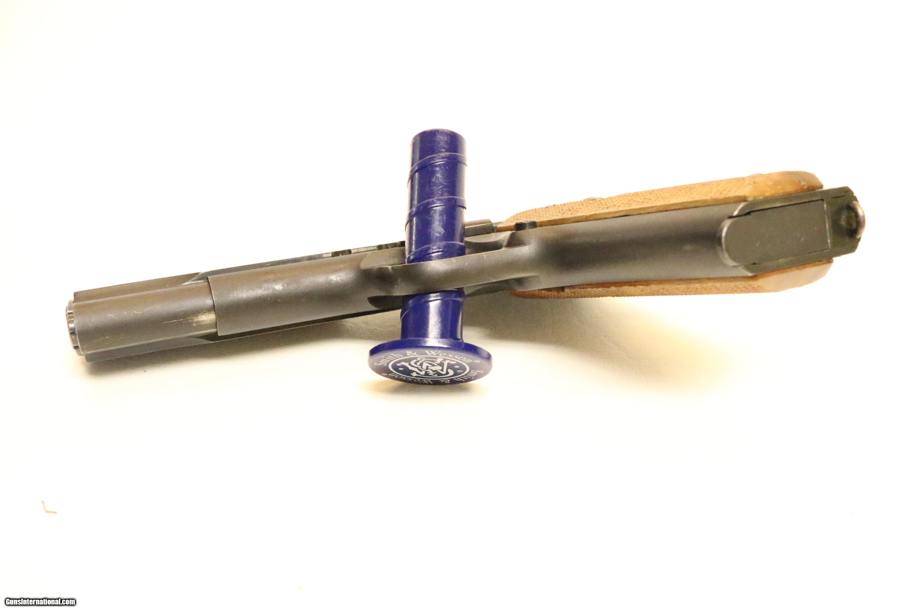 Description: Very good condition 1963 Colt 1911 commercial government Model. Has a pat pending Bo-Mar rib and flat main spring housing. Excellent workmanship went into this gun great trigger pull smooth and tight. reminiscent of an early Clark bullseye gun but there is no Clark inscription on the exterior or C stamp that i can see on the interior. Flat lanyard main spring housing. very nice gun all the way around SOLD Curio/Relic: Yes |
