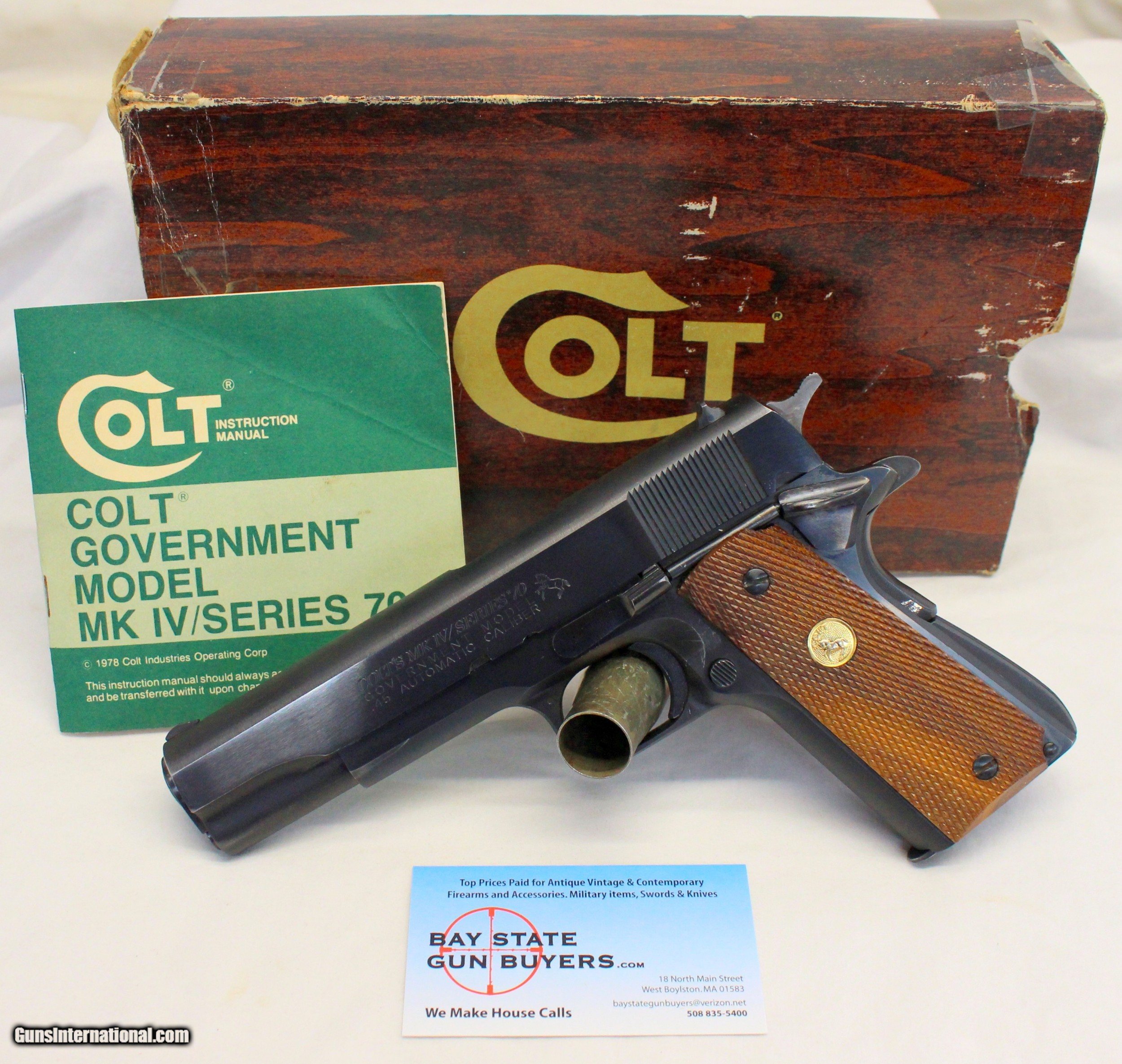 1981 COLT 1911 SERIES 70 MKIV Government Model Pistol .45ACP Box & Manual