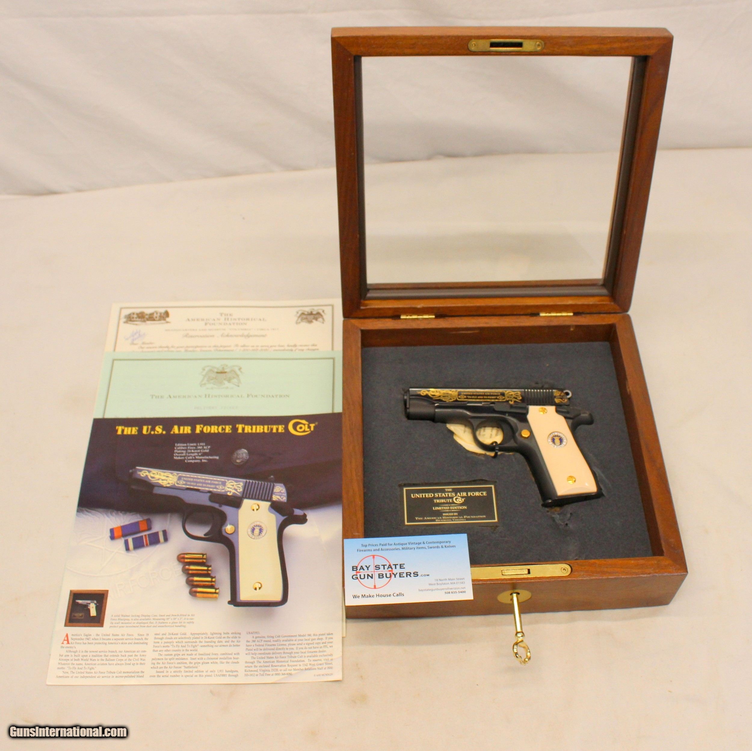 Description: We are offering for a sale an American Historical Foundation COLT GOVERNMENT pistol commemorating The UNITED STATES AIR FORCE. This collectible pistol comes in a wooden case with glass front. The pistol remains in excellent condition and is unfired. Light handling wear noted. PLEASE SEE PHOTOGRAPHS! RARE AND COLLECTIBLE EXAMPLE! Ship & Insure 49.95 **** PLEASE NOTE: WE ONLY ACCEPT MASTERCARD AND VISA AS PAYMENT OPTIONS (please note we charge a non-negotiable 3% CC fee) **** **** WE TAKE CREDIT CARD PAYMENT OVER THE PHONE. WE DO NOT TAKE PAYMENT THROUGH THIS **** PLEASE LOOK AT ALL PHOTOGRAPHS FOR CONDITION Please know the legality of any weapon in your state before . If a gun can’t be transferred to you we will charge a 15% re-stocking fee. We are in the shop MODAY, WEDNESDAY, THURSDAY, FRIDAY and SATURDAY 8am-4pm EST. We will be in touch within 24 hours of your purchase. Please be ready to provide CC information. Please have your FFL email a copy of their license to: . No Face To Face Transfers! Please note: Clicking "buy" does not guarantee that this gun is yours, However clicking “Buy” will reserve this gun for you, if it hasn’t been sold in store. We will try to do our best to remove the posts as efficiently as possible, but sometimes delays may ensue. “Buy” is your safest bet to reserve a gun. Also please add 6.25% MA state sales tax (if from MA) and 3% credit card shop courtesy fee for all out of state buyers. SOLD |