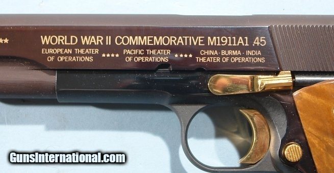 AUTO-ORDNANCE WW2 AMER. HISTORICAL ASSN. COMMEMORATIVE COLT 1911-A1 OR 1911A1 PISTOL CA. 1985 NIB IN DISPLAY CASE W/PAPERS.