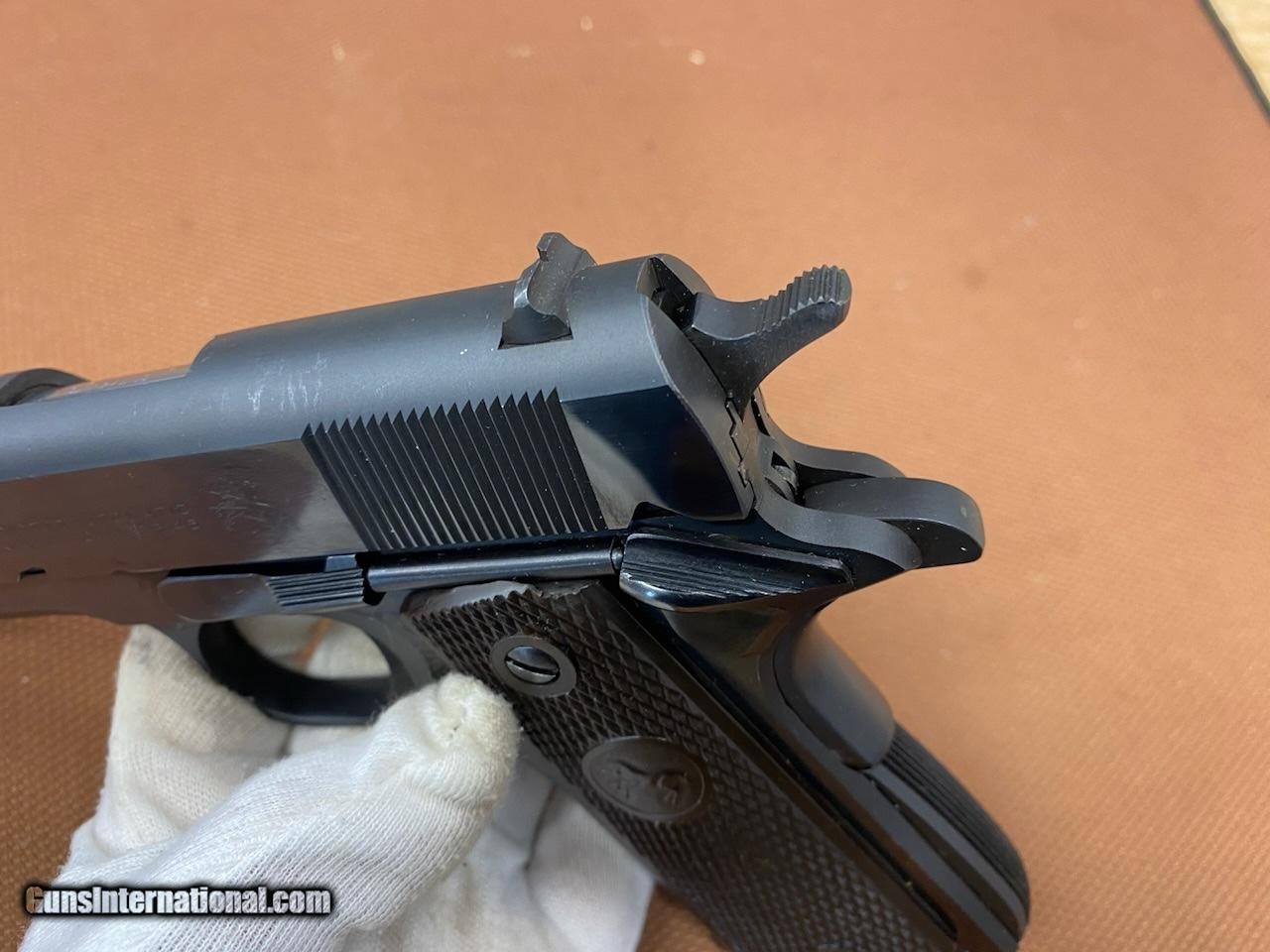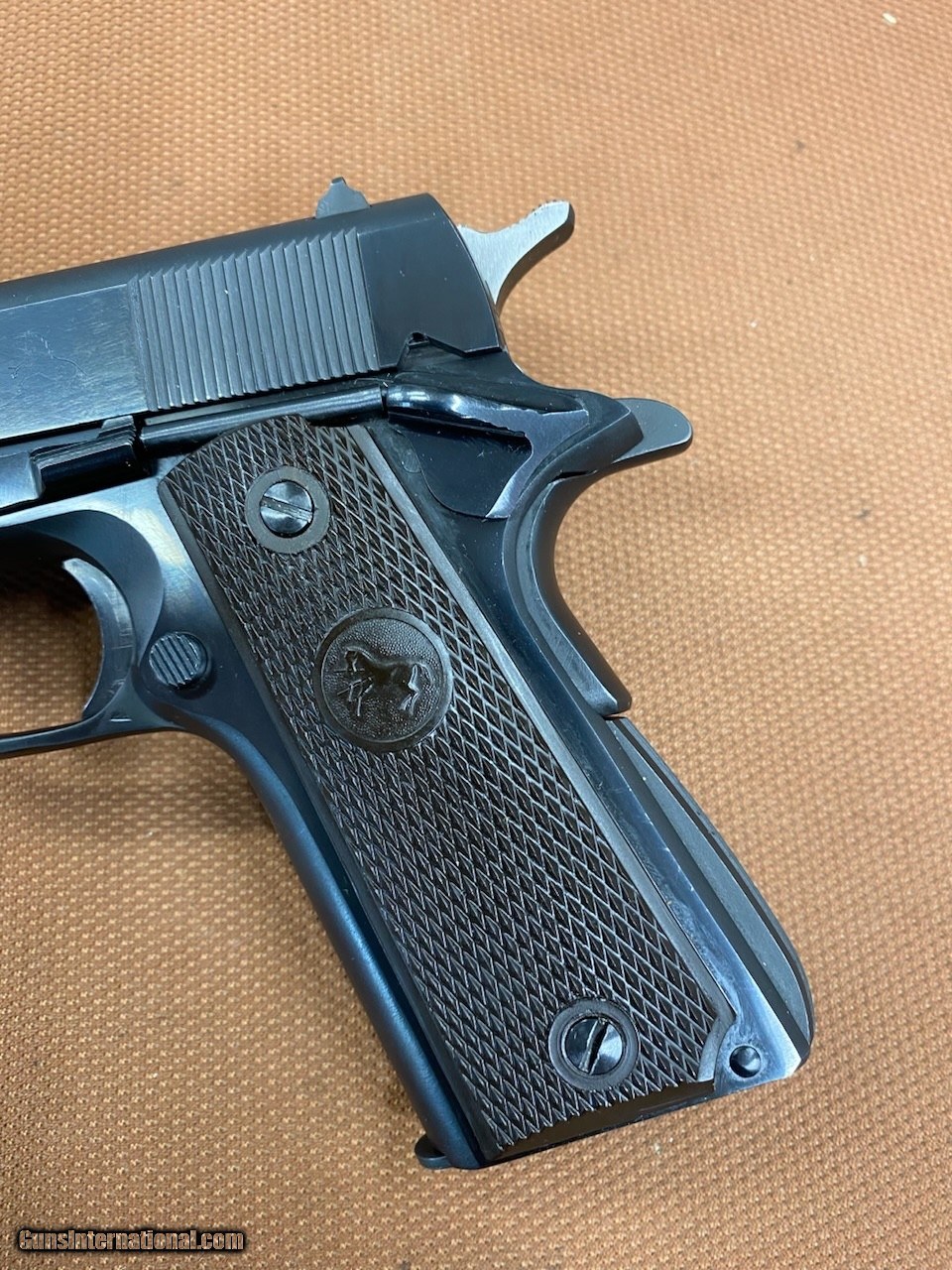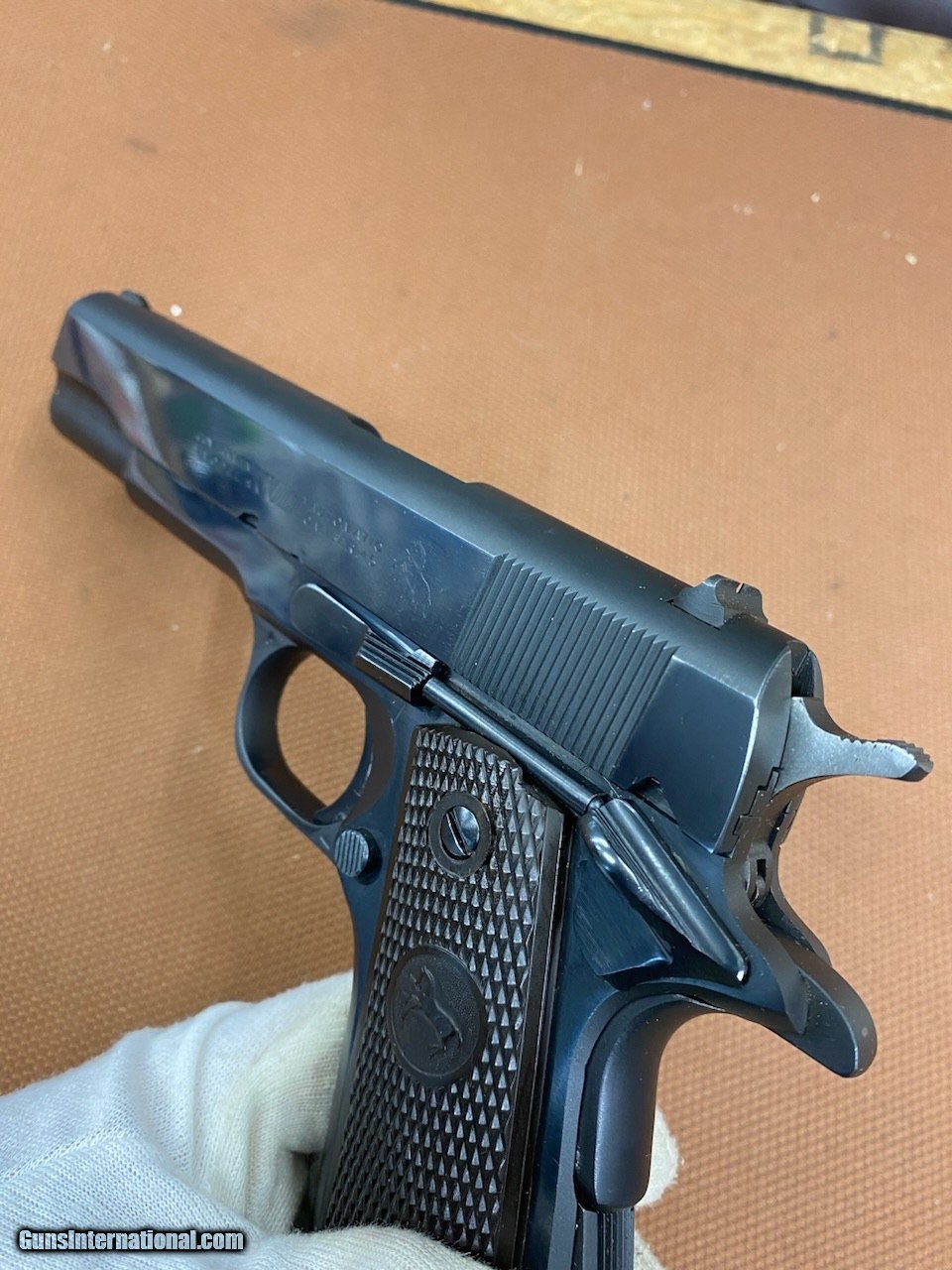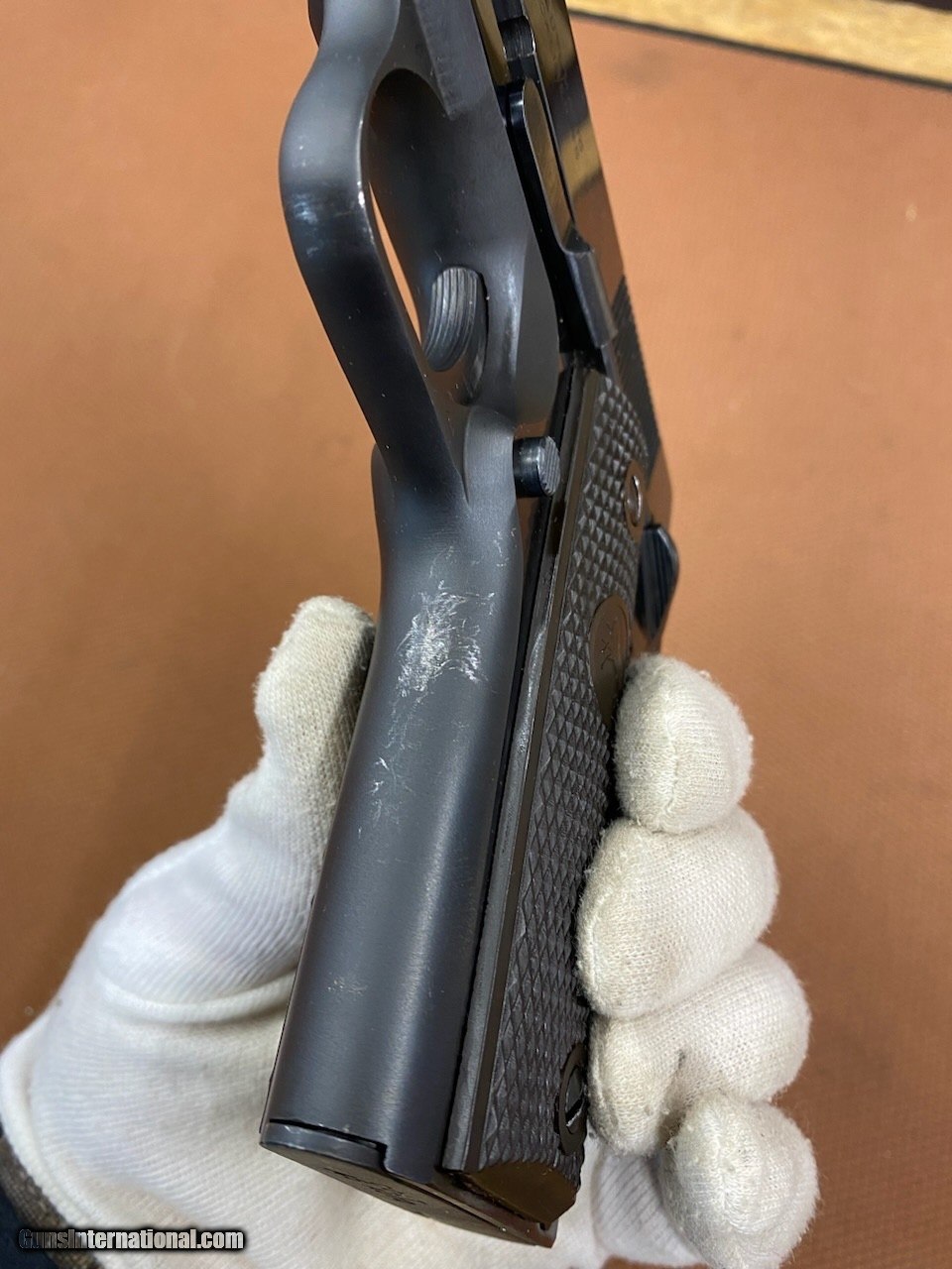 Description: ***SOLD*** Absolutely beautiful Pre 70 Colt 1911 Commercial Government model, in 45 auto. This beauty was made in 1965, and it features the distinctive high quality craftsmanship and deep dark bluing of the 50's, and 60's 1911 commercial pistols! As the pictures clearly show, this pistol is in high collector's grade! The extremely hard to find original factory plastic grips (notorious for shrinking and becoming brittle over the years), are in excellent shape! One of the best grips we have seen on these 50's and 60's guns! It has a rich dark brown color and they are free of any cracks or chips! Besides a few handling marks on the bottom area of frame (the worse one being a series of scratches on front strap, grouped together. Please see pictures) the pistol is in excellent condition! The barrel and chamber are superb! Action is crisp! It comes with original magazine. No box! These are getting harder to get, especially in this condition! Don't miss out on this one! Cashier checks and money orders, same as cash. Personal checks, will be held until funds clear (3-5 business days). Shipping insured to Continental US only will be $75 (AK & HI extra). No sales to California! SOLD Handgun Caliber: .45 ACP (.45 Auto) |