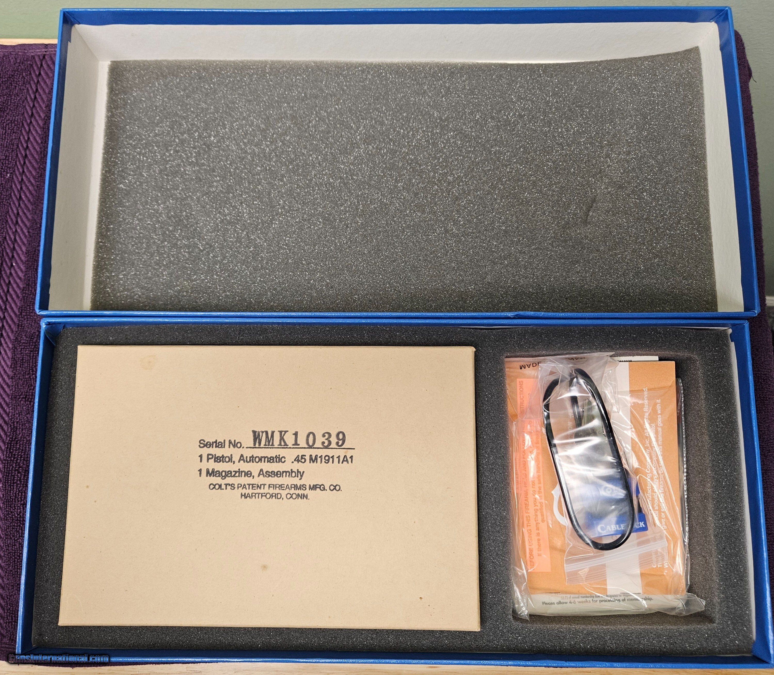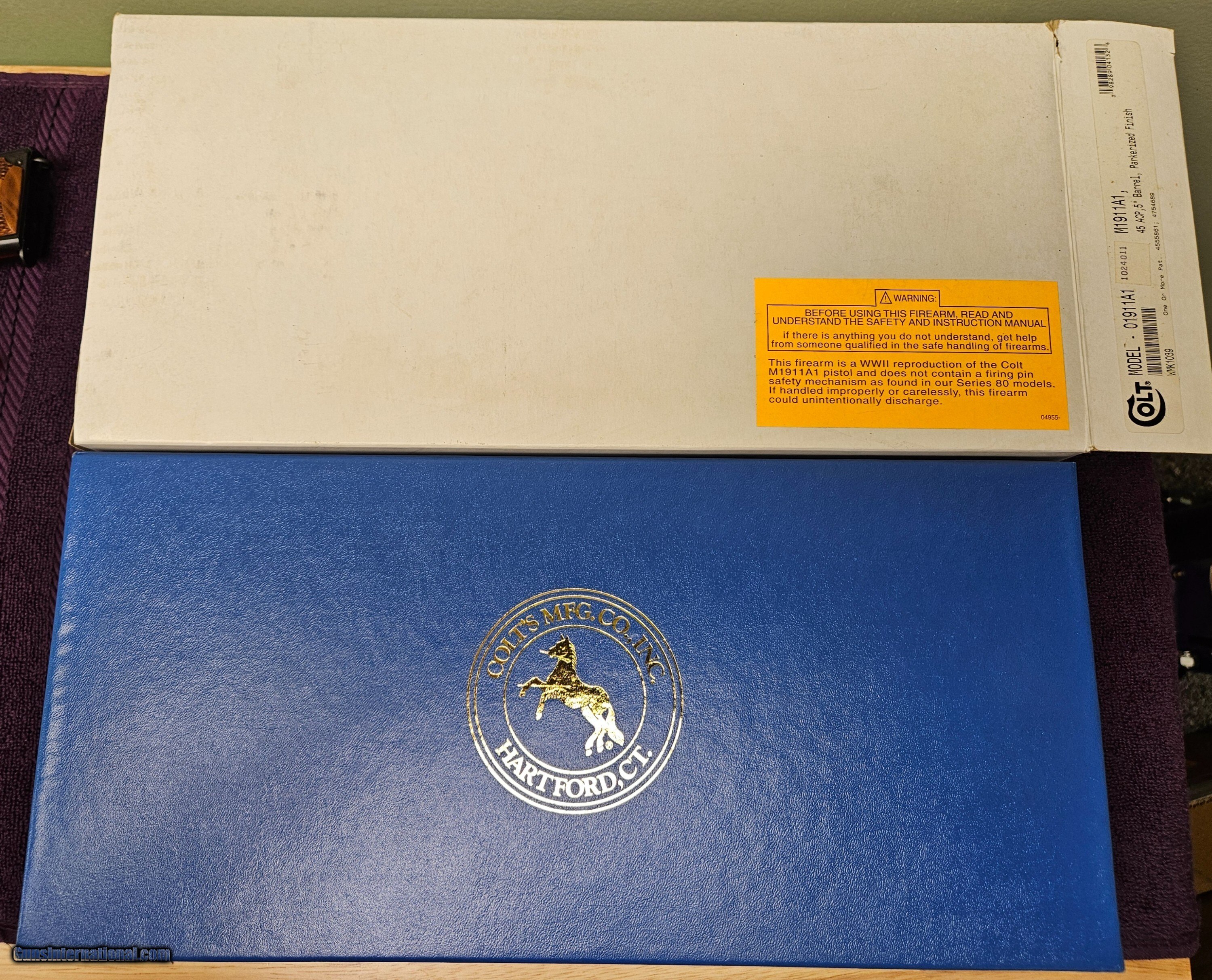 Description: This beautiful parkerized Colt 01911A1 M1911A1 is New in the Box. Colt made these reproductions in 2002 and they look really good. This one is perfect and comes with all original box, outer sleeve, two mags, and paperwork. Shipping is $70 via FedEx. Payment is via USPS money order. Price: $2,495.00 Shipping: $50.00 Contact Seller |