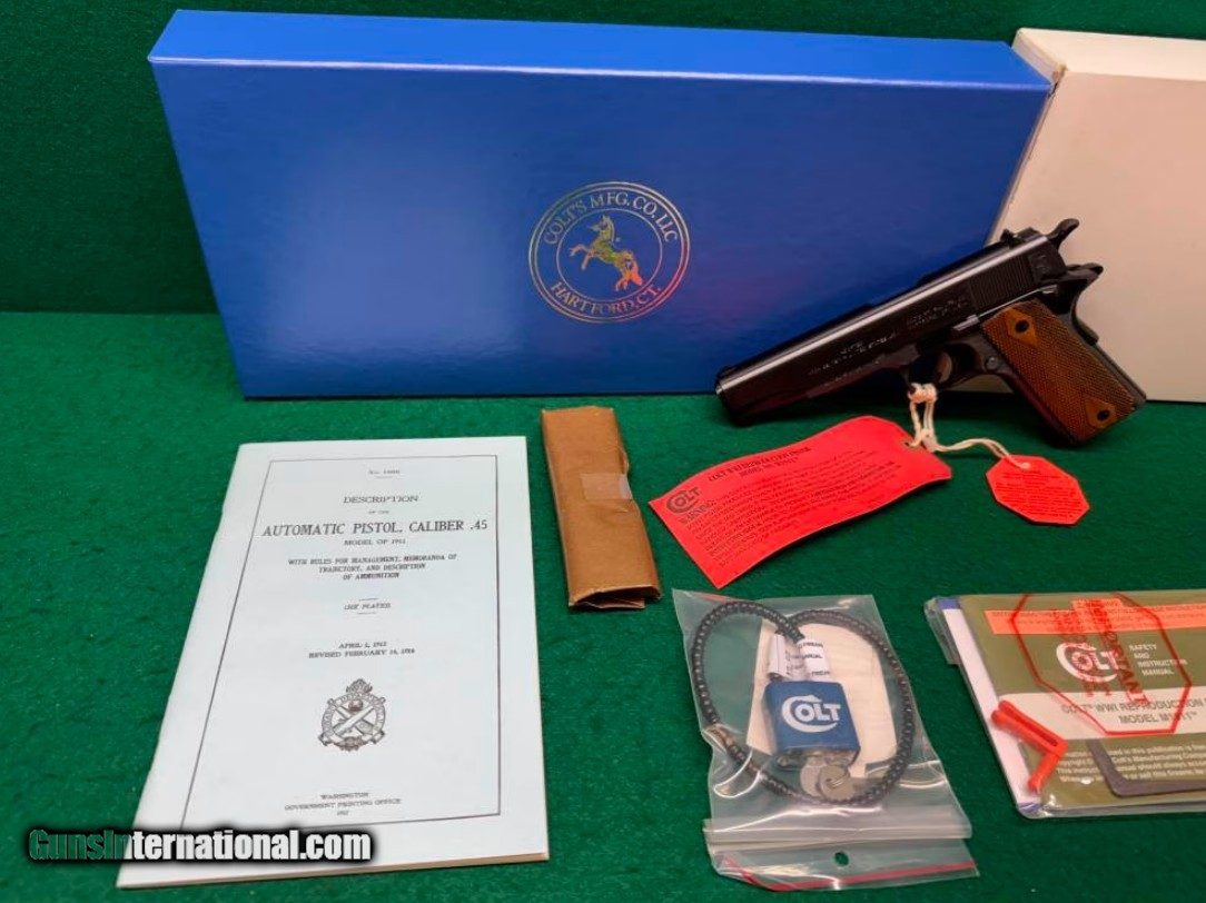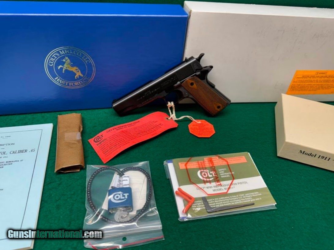 Description: Guns Listing ID: 584969 This listing is for a Colt 1911 Government 100th Anniversary 45 ACP Blued 5\" BBL 7+1. This Colt 1911 is a Government model, it’s a Tier III model, and it’s a 100 Year Anniversary edition. This Colt 1911 is chambered in 45 ACP, and it will hold 7 rounds in the magazine. This pistol comes with a 5 inch barrel. It comes equipped with the original style fixed front & rear sights. This pistol appears to be in great condition! The action appears to be in great condition, the finish appears to be in great condition, and the bore appears to be in great condition. This pistol comes with the outside cardboard box, the blue Colt cardboard box, a blue manual, an extra 7 round magazine inside of wax paper wrapping, a cable lock, a Colt instruction manual, a maintenance tool, and a white cardboard 100th Anniversary Model box. This would be a great addition to your collection! ** DISCLAIMER** THIS FIREARM HAS NOT BEEN TEST FIRED*** Manufacturer: COLT Model: 1911 100TH ANNIVERSARY Caliber Info: .45 ACP Condition: Used - Non-Certified Barrels: 5" BARREL Action: SEMI AUTOMATIC Weight: 2.4 LBS. Price: $1,509.99 Contact Seller |