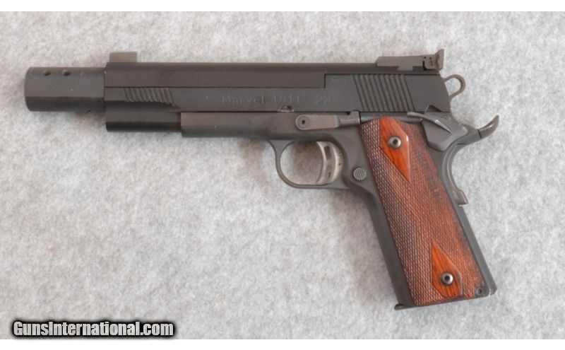 Description: SOLD Caliber Info: .22 Long Rifle Metal Condition: Very good. Wood Condition: Very good. Bore Condition: Clear and clean. Barrels: 5 inches. Triggers: Standard. Stock: Checked wood grips. Weight: 2 lbs. 6 oz. Sights: Adjustable rear notch and blade front. Extras: 22/45 conversion with box with various parts. Item Location: Lone Tree, CO |
