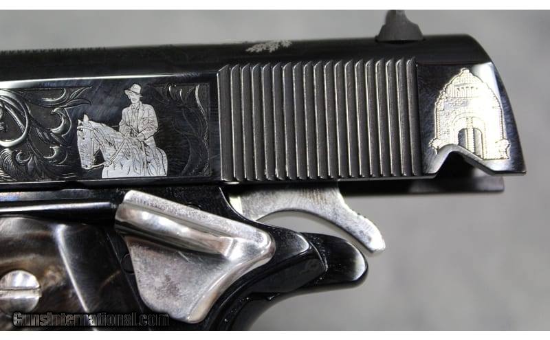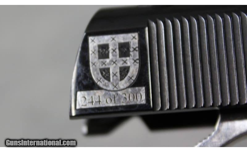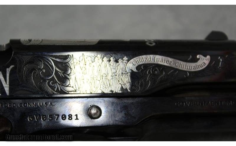 Description: This exceptionally rare and highly sought-after item is part of the limited production "Pascual Orozco Vazquez" Mexican War of Independence Series, a tribute to Orozco, celebrates the life and contributions of Pasqual Orozco, a key figure in the Mexican Revolution. Through symbolic imagery and evocative storytelling, the tribute honors Orozco's role in advocating for social justice and political change. It stands as a testament to his enduring legacy and the ideals he fought for. The featured firearm is a Colt Firearms Government Model Series 70 1911 semi-automatic single-action pistol, chambered in the desirable 38 Super. It boasts a 5" barrel, a high-polished blue finish, intricate silver engravings, manual safety, fixed sights, silver accents, a 9 rd magazine, and Mexican Government embellished "logo" Brown faux pearl grip panels. The pistol is adorned with beautiful scroll engravings and "OROZCO" embellishments, making it a unique collector's pieceEach pistol is individually engraved with its specific number out of the 200 produced, located on the rear of the slide. The package includes the factory hard case, owner's manual, gun lock, and one magazine—all in excellent new condition. The item is currently in stock and ready to ship, as depicted in the provided images. Don't miss out on this extraordinary and highly collectible piece! .38 Super SOLD Barrels: 5.0 Weight: 2 lbs 4 oz Item Location: Las Vegas, NV |
