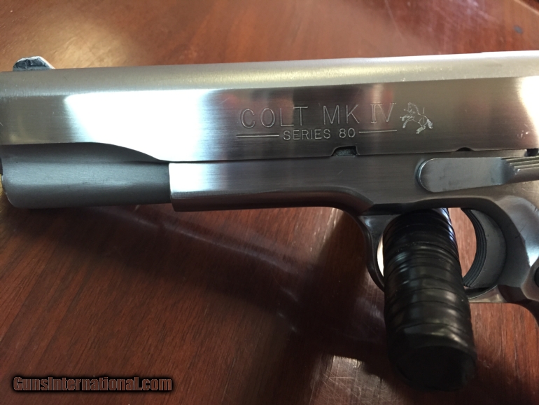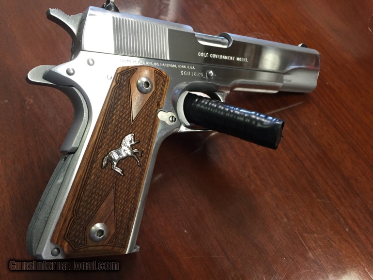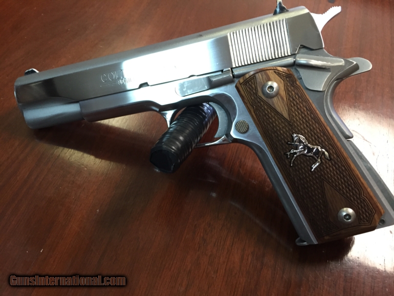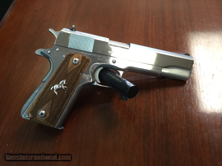 Description: THIS IS A COLT 1911 .38 SUPER WITH A HIGH POLISHED STAINLESS STEEL 80 SERIES. ALMOST A MIRRORED FINISH ON IT. THIS IS A USED GUN, FUNCTIONS GREAT WITH A LITTLE WEAR. ONE 8 RND MAG. FREE SHIPPING!!!! SOLD |