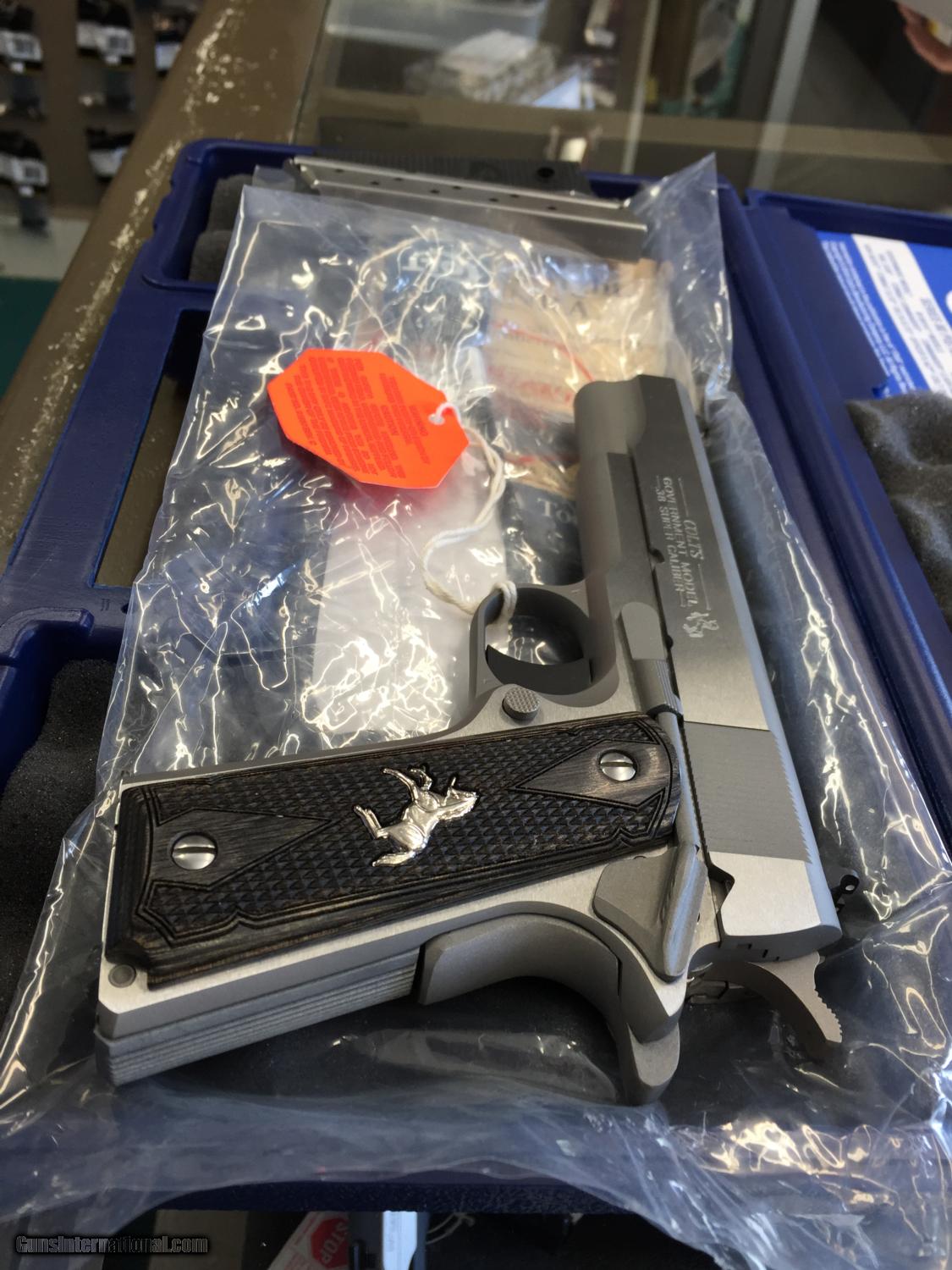 Description: THIS IS A NEW IN THE BOX .38 SUPER WITH CUSTOM COLT GRIPS. BEAUTIFUL GUN TWO 9 ROUND MAGS FREE SHIPPING!!!! SOLD |