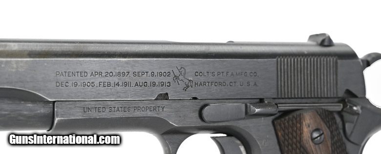 Description: Colt 1911 .45 ACP caliber pistol. WWI U.S. Military pistol. Bore is excellent. Metal has approximately 85% original finish. Comes with a 1918 dated holster and belt.