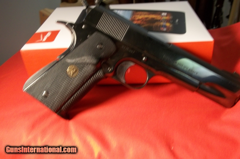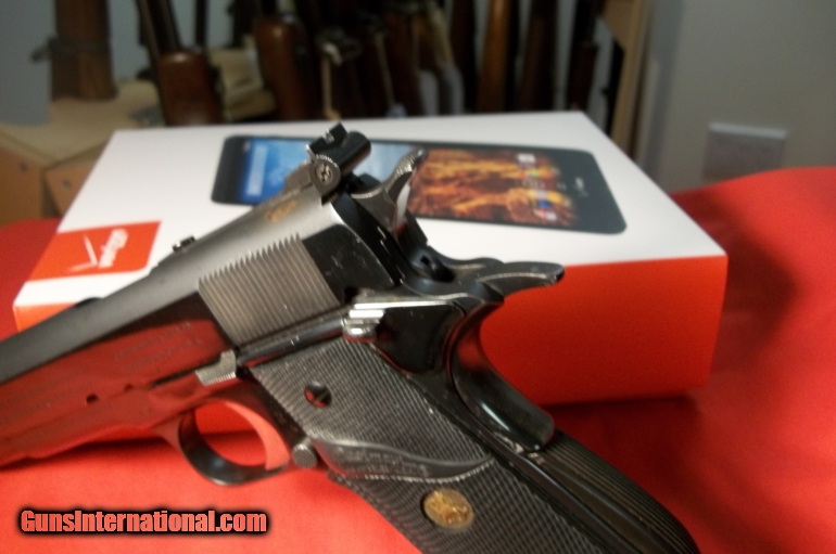 Description: COLT MODEL 1911 U S ARMY SET UP AS A TARGET GUN WITH, NATIONAL MATCH BARREL WHICH IS BRIGHT AND SHINEY , ADJUSTABLE TARGET SIGHTS I BELIEVE THEY ARE BOMAR SIGHTS, PACKMYER SIGNATURE GR[PS MODEL. WITH RAISED AREA FOR THUMB REST? EXTENSION ON THE SAFETY. I AM STILL TRYING TO FIND OUT THE MAKER OF THE TRIGGER. THERE IS ONE MAGAZINE THAT IS NOT IN THE PICTURE. SERIAL NUMBER IS 446067. SHIPPING IS $55.00 UPS. SOLD Curio/Relic: Yes |