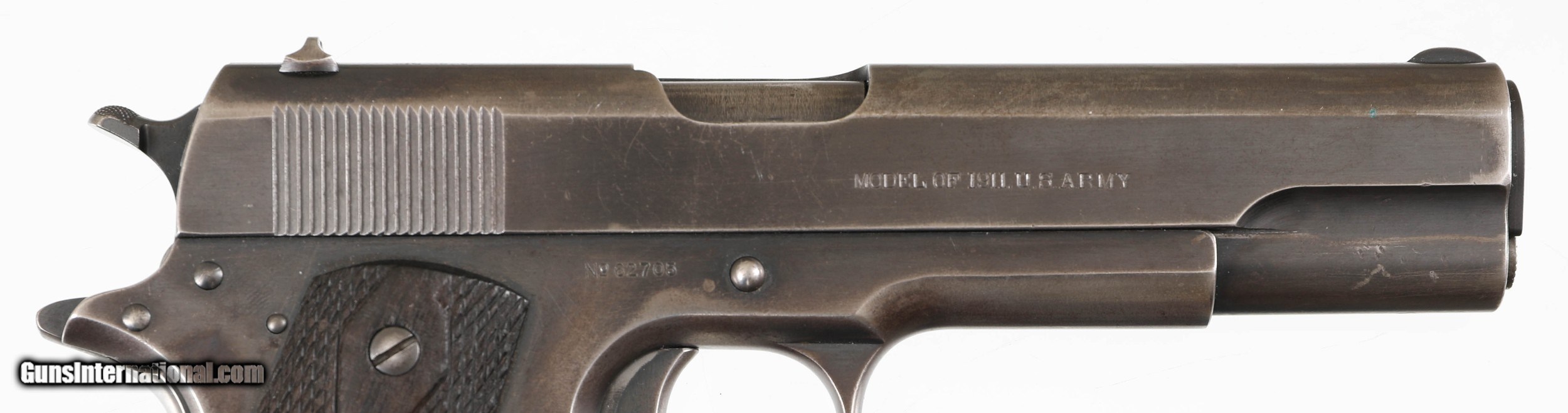 SOLD Curio/Relic: Yes Handgun Caliber: .45 ACP (.45 Auto) Manufacturer: COLT Model: 1911 Serial Number: 627?? Barrel Length: 5 Condition: EXCELLENT |