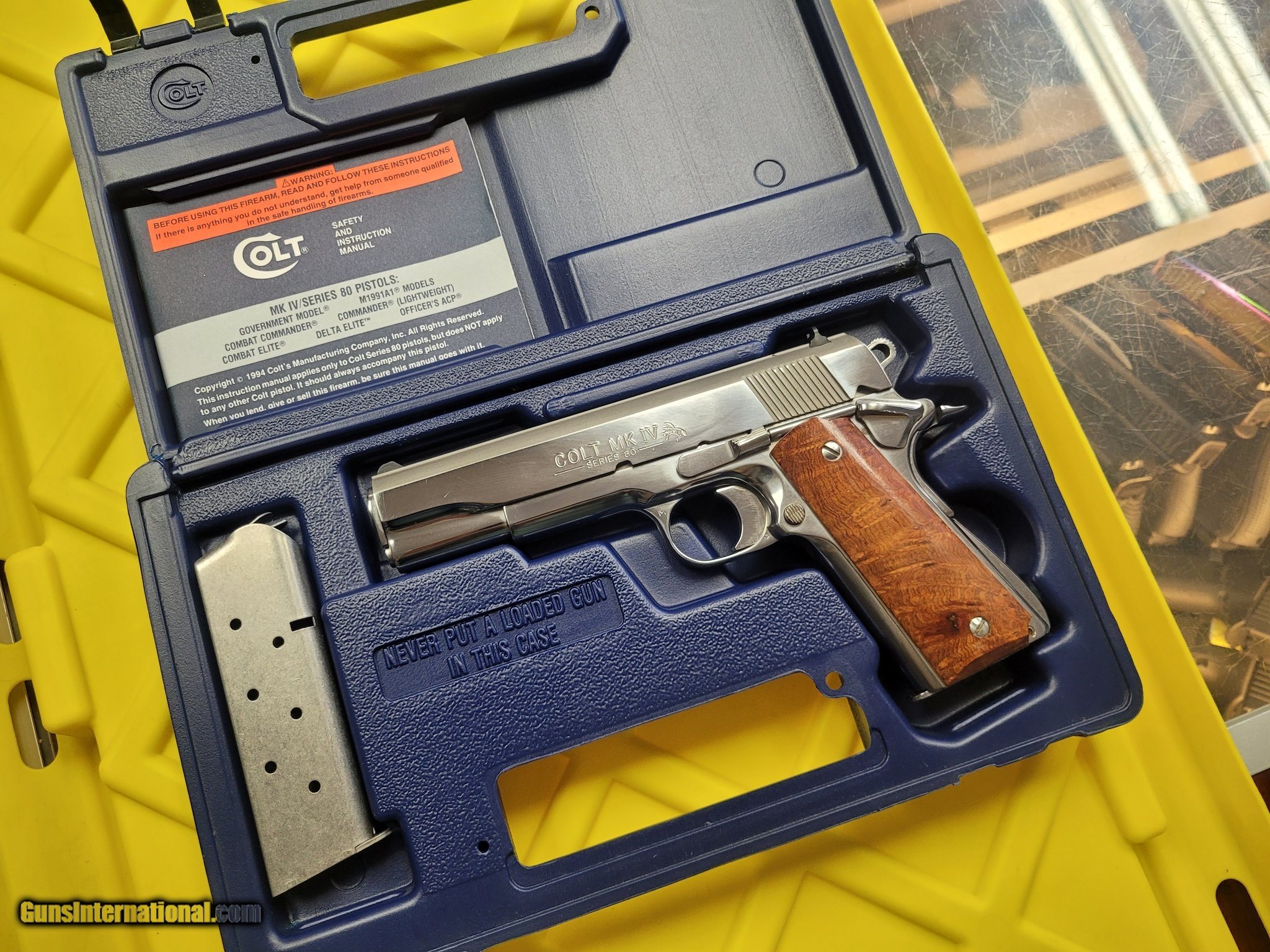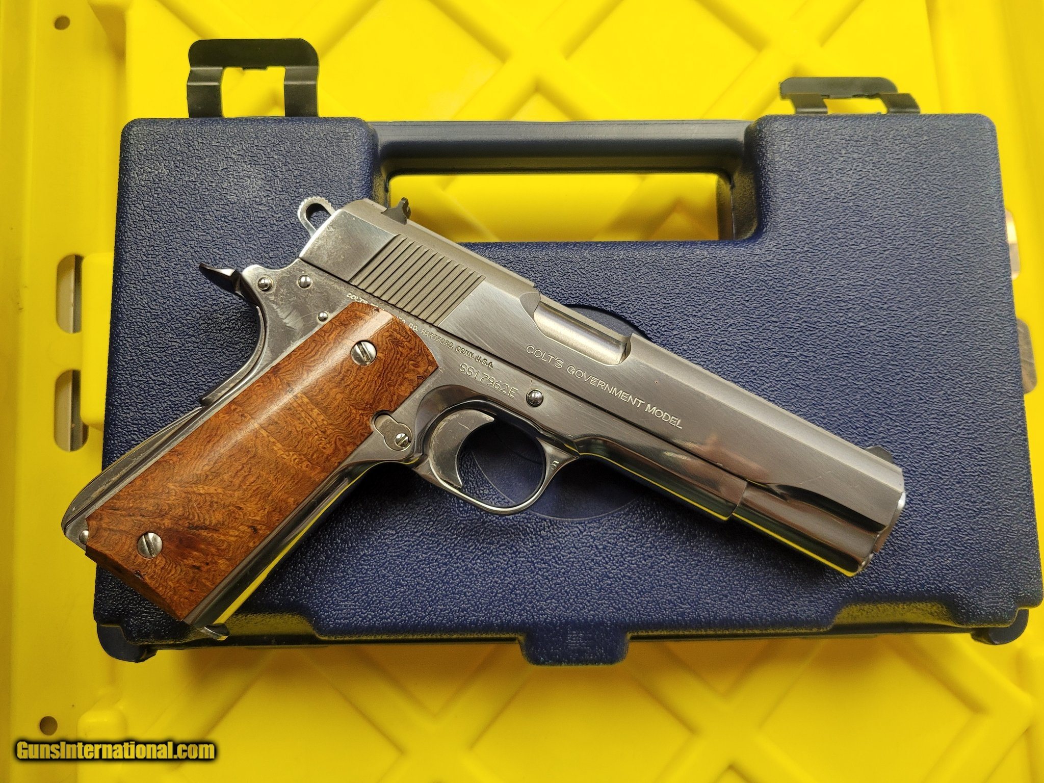 Description: Guns Listing ID: 1290832 THIS IS A PREOWNED COLT 1911 \"1996\" ULTIMATE BRIGHT STAINLESS 5\" GOVERNMENT W/2-8RD MAGS W/FACTORY BOX, FACTORY PAPERWORK VERY GOOD CONDITION HARD TO FIND DON‚‚T MISS THIS ON SOLD Manufacturer: COLT Model: 1911 Caliber Info: .45 ACP Condition: Used - Non-Certified Barrels: 5 BARREL Finish: STAINLESS |