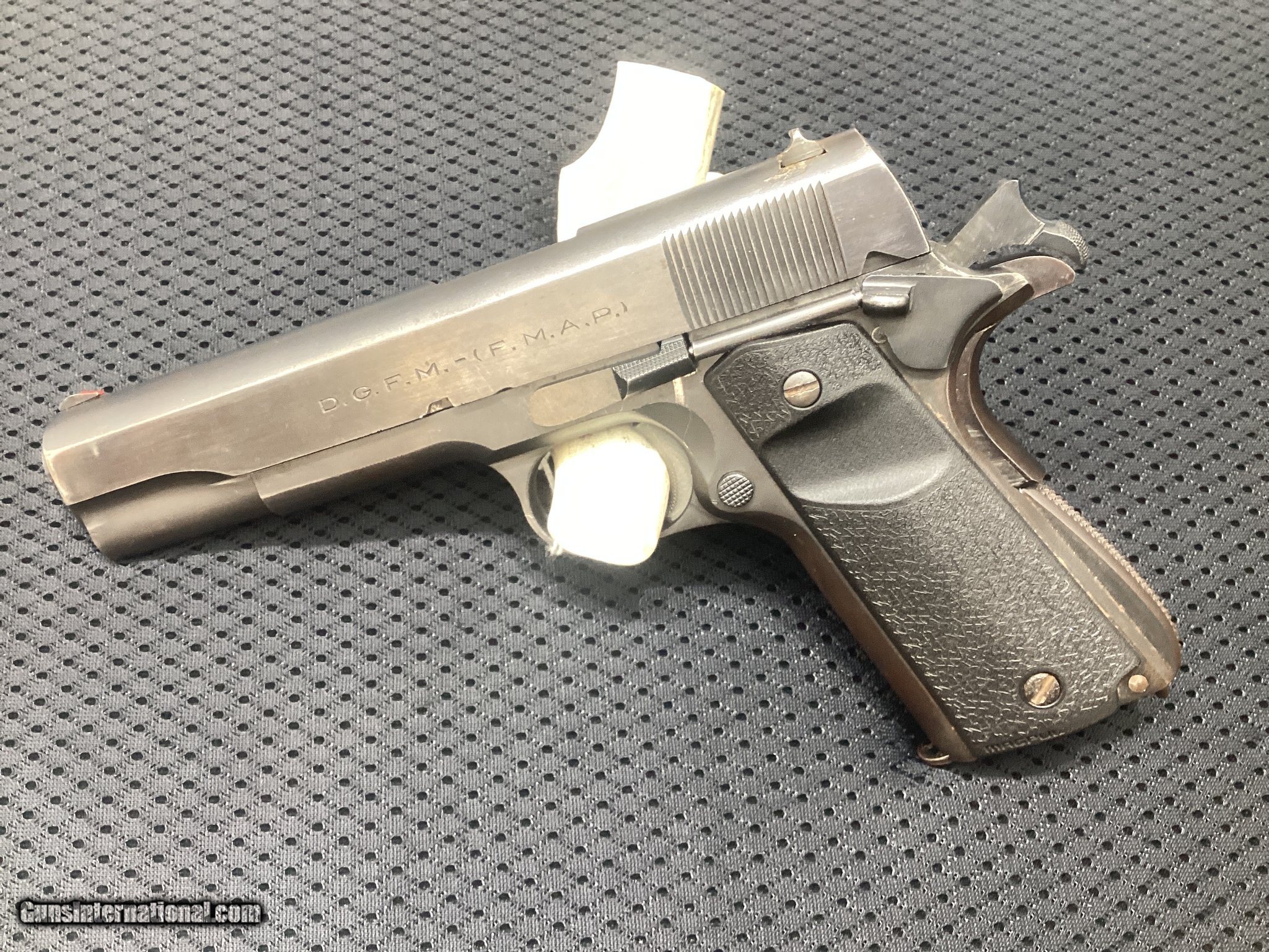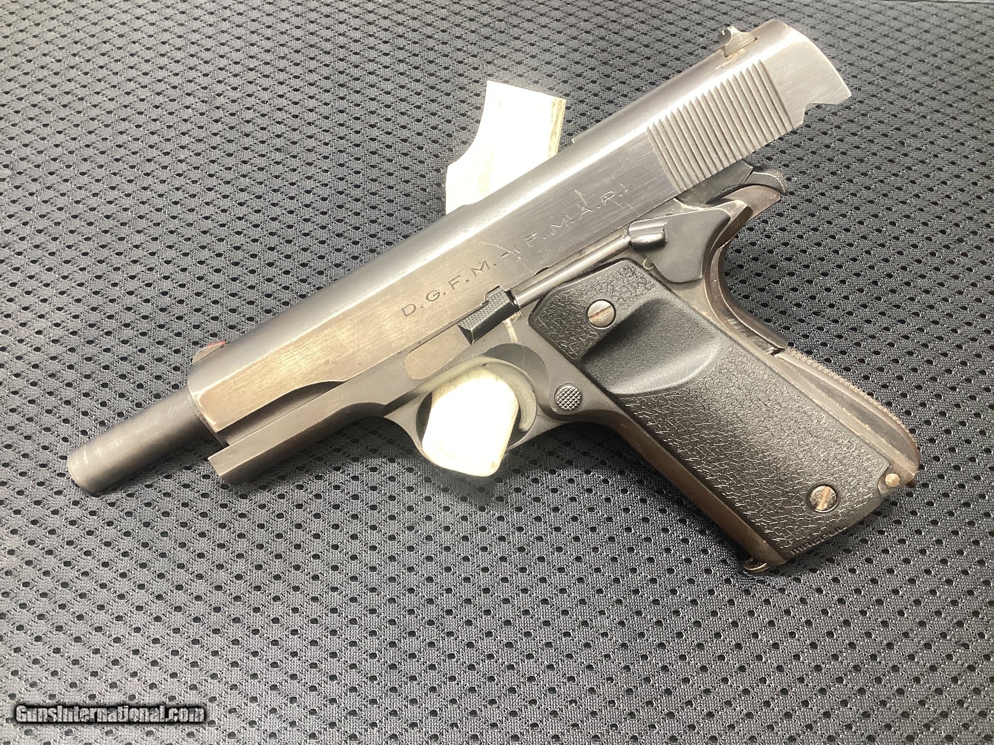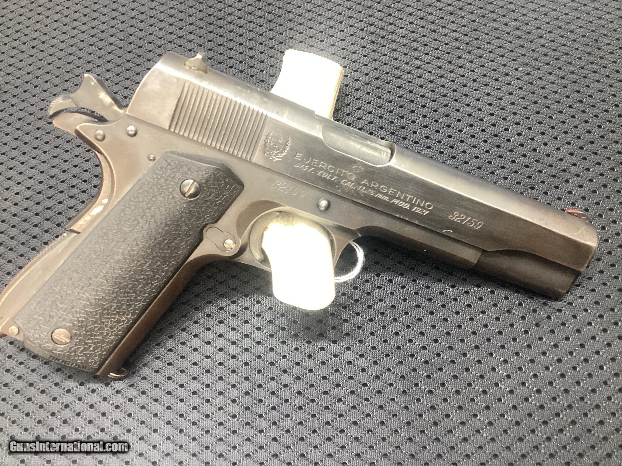 Description: Guns Listing ID: 460068 COLT EJERCITO ARGENTINO, SIST.COLT CAL MOD 1927, D.G.F.M-(F.M.A.P.), IRON SIGHTS 7 ROUND MAG, (386180-1) SOLD Manufacturer: COLT Model: 1911 Condition: Used - Non-Certified Barrels: 5 Gauge Info: .45 ACP Finish: blued |