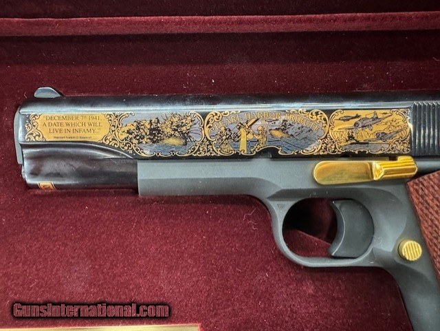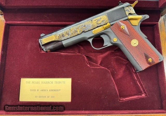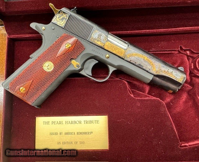 Description: Guns Listing ID: 466005 America Remembers Pearl Harbor Tribute 76 of 500. Comes with wood display box. SOLD Manufacturer: COLT Model: 1911 Condition: Used - Non-Certified Barrels: 5 Gauge Info: .45 ACP Finish: blued |