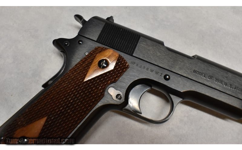 Description: Colt 1911 .45 Auto SOLD Chambers: N/A Metal Condition: Excellent Wood Condition: Excellent Bore Condition: Excellent Barrels: N/A Triggers: N/A Stock Dimensions: N/A Fore End: N/A Butt Pad: N/A Weight: 2LBS Sights: N/A Chokes: N/A Item Location: Colorado Springs, CO |