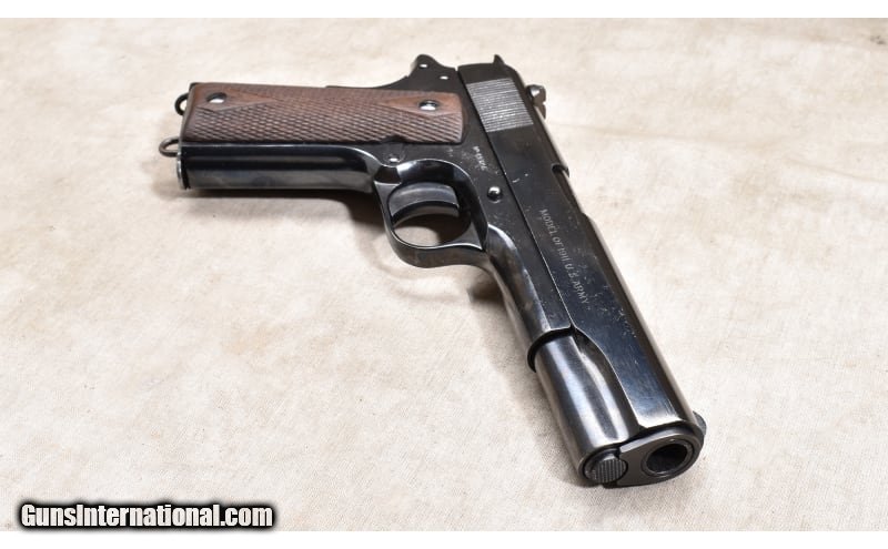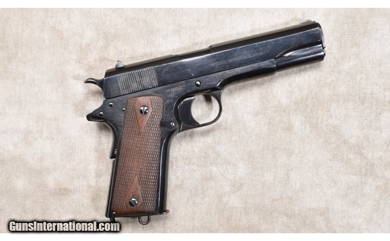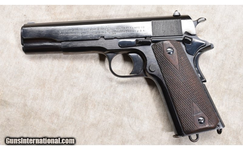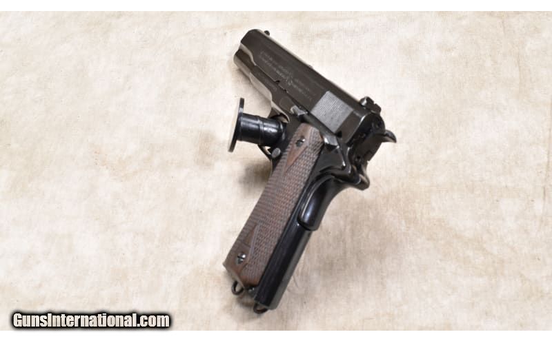 Description: This 1911 Colt was manufactured in 1918, and is in fair collectors condition. It appears to be a re-done battlefield pick-up that had quite a bit of corrosion repaired. The sights are correct, and the magazine is the 'two-tone" version. It has two lanyard loops: one on the frame and one on the magazine. All the metal stamps are legible. .45 Auto SOLD Chambers: 8+1 capacity Metal Condition: "Fair. This appears to be a battlefield pickup that was redone. The rust and pits have been sanded as much as possible, but there remains some pitting with the re-blue showing in the pits. Wood Condition: "Fair. The scales are walnut and the checkering points are worn down, The screws look new. Bore Condition: A bit rough but appears usable. Barrels: 5 inches Triggers: Factory single action only Butt Pad: Checkered walnut Weight: 36oz Sights: Low profile post and notch Chokes: 36 oz Item Location: Rogers |