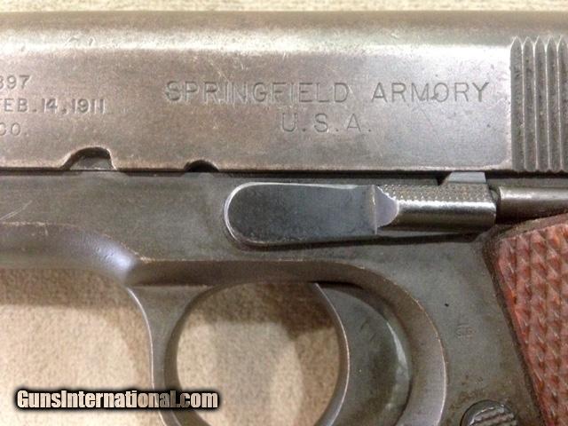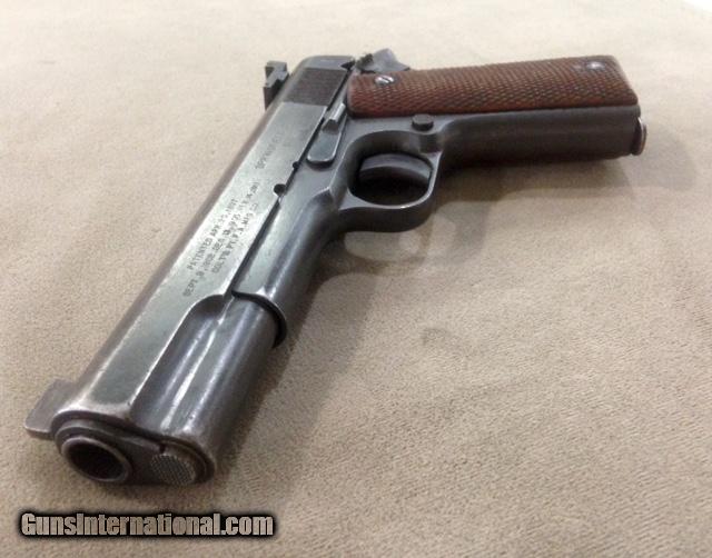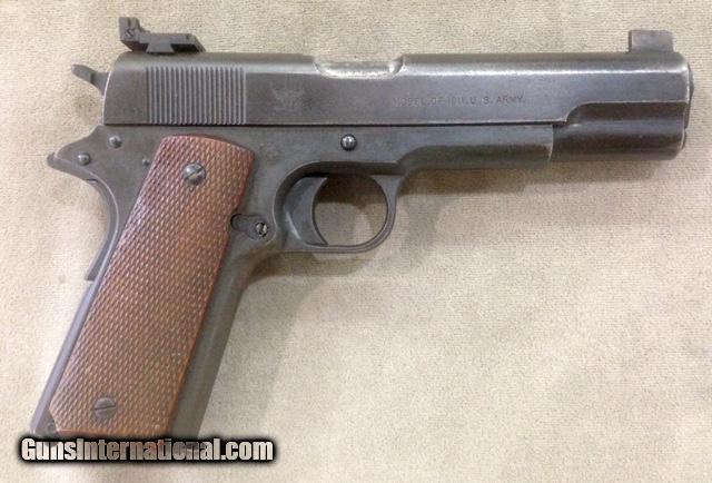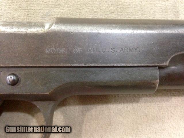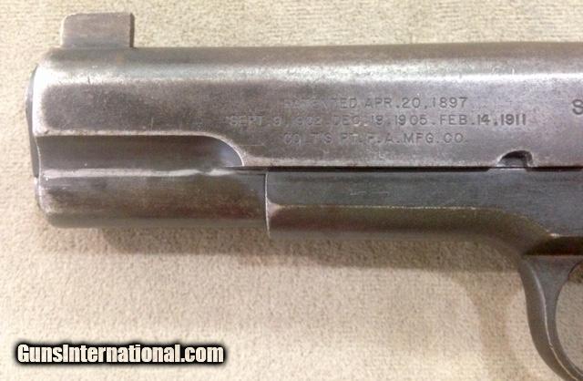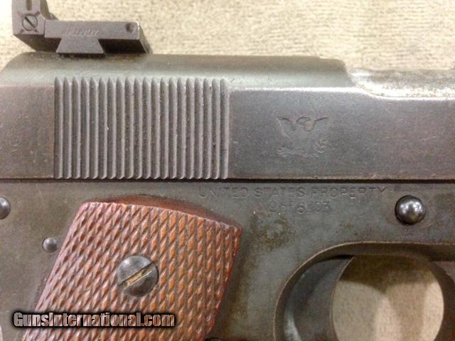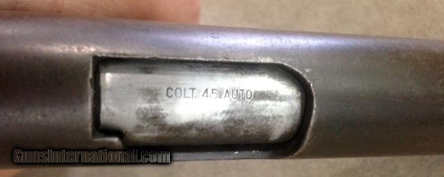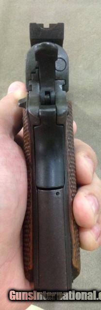 Description: This an excellent condition Colt 1911 frame, serial range 5563xx with a non matching Springfield Armory 1911 slide with ordnance bomb proof and marked Model Of 1911 US Army, that has been fitted with match sights. Pistol has had grips replaced, otherwise original. Barrel marked COLT .45 AUTO. Slide is not numbered under the firing pin stop. A great parts gun for restoration or shoot as is. SOLD Curio/Relic: Yes |