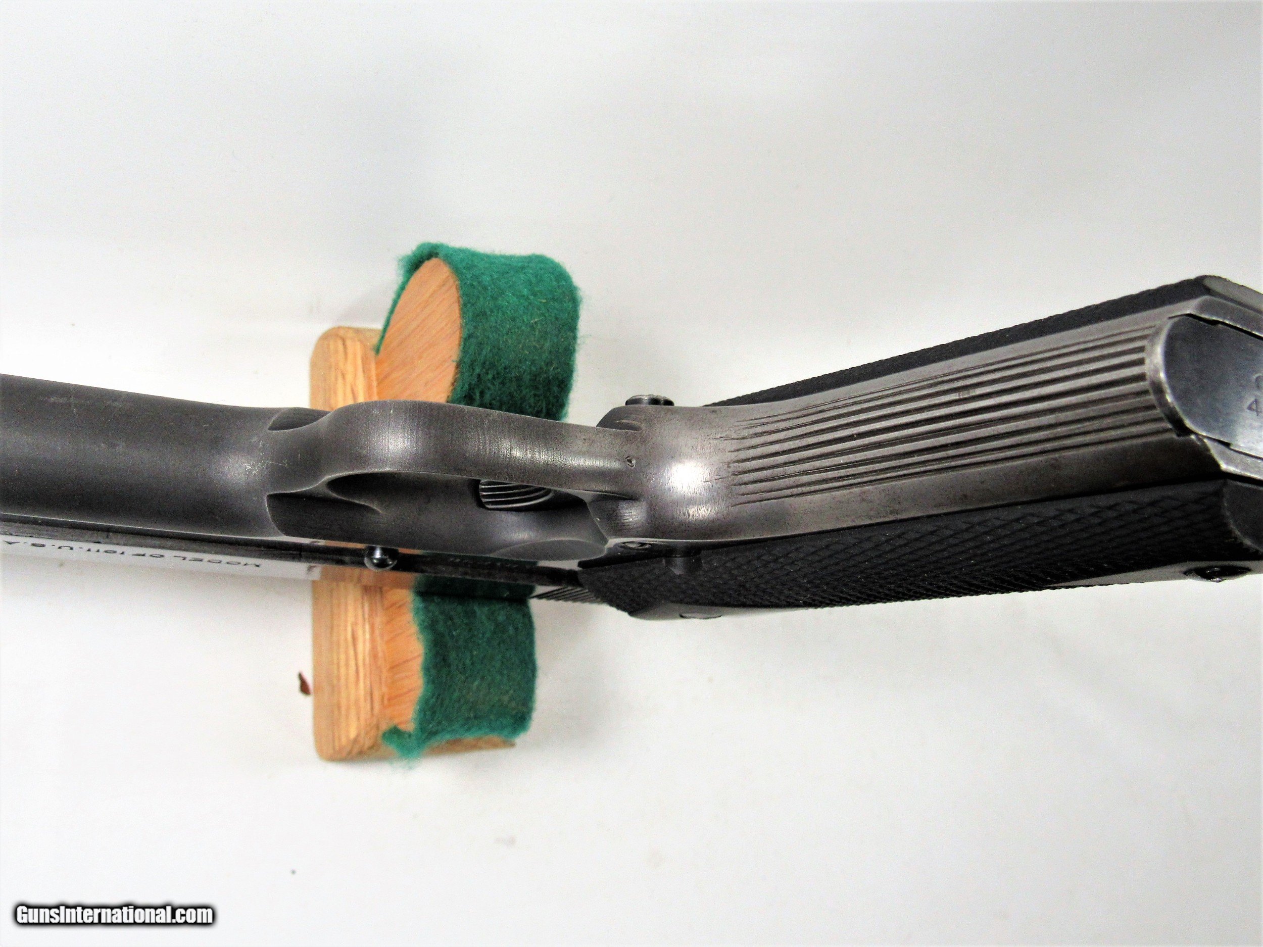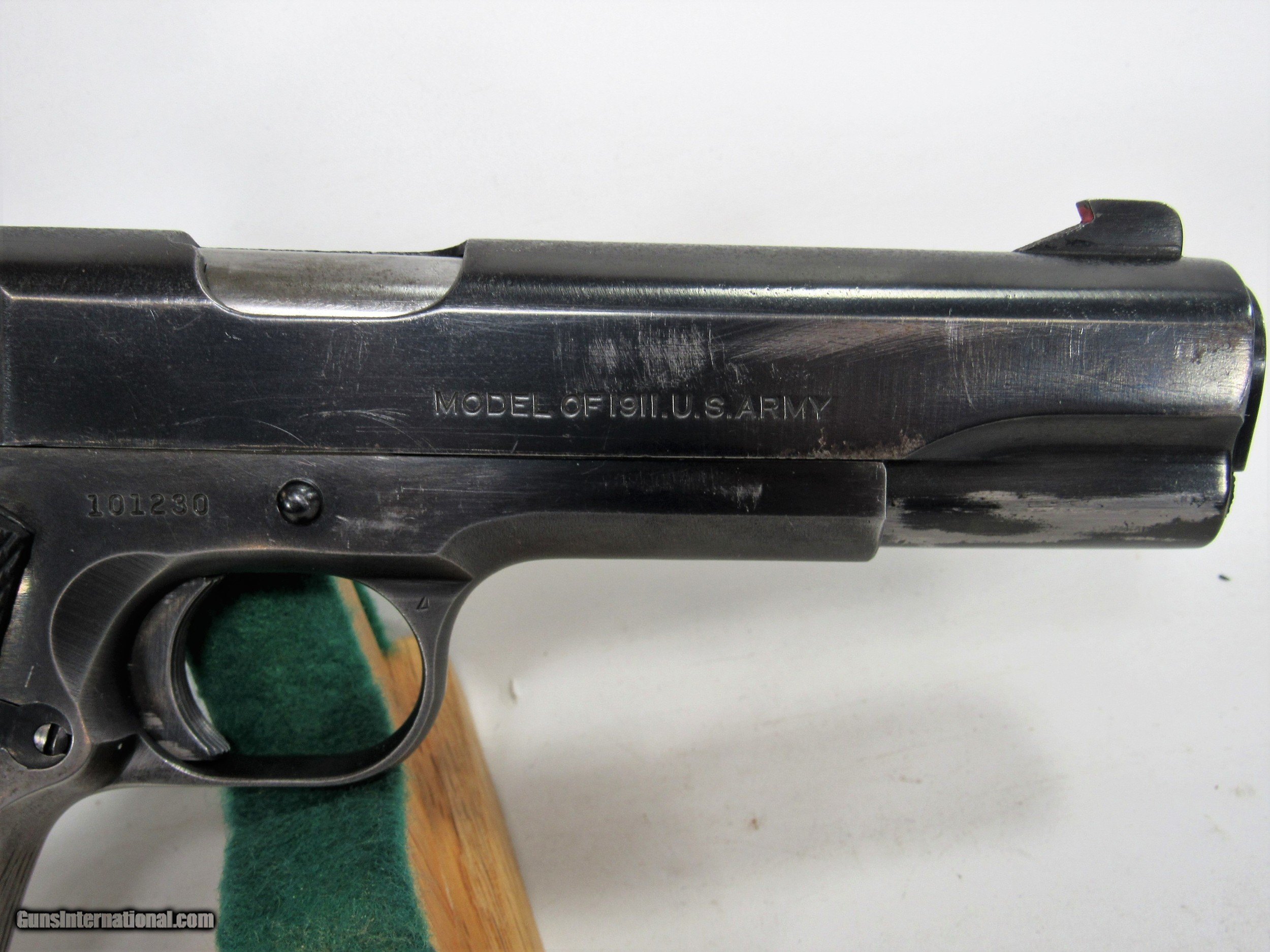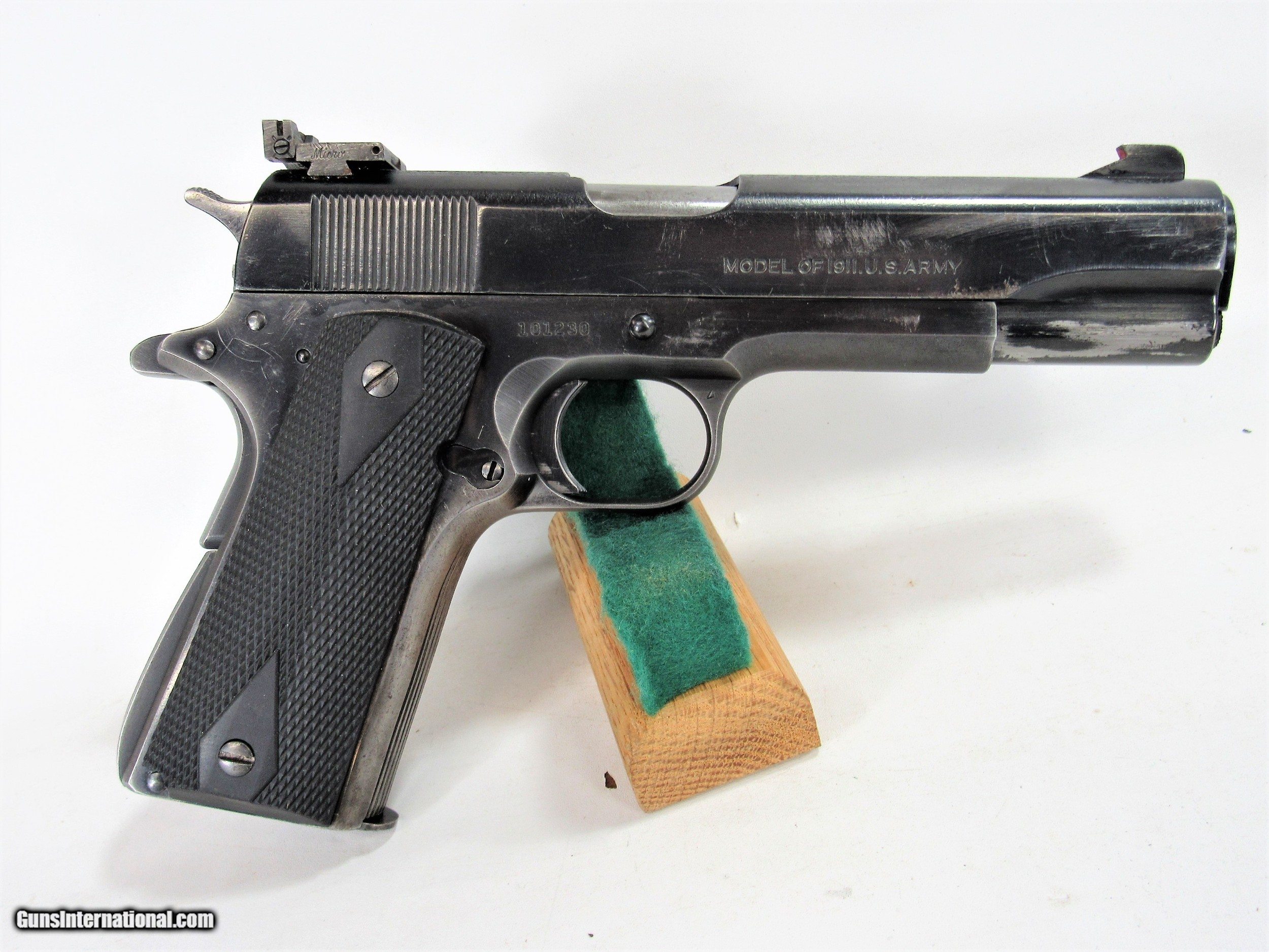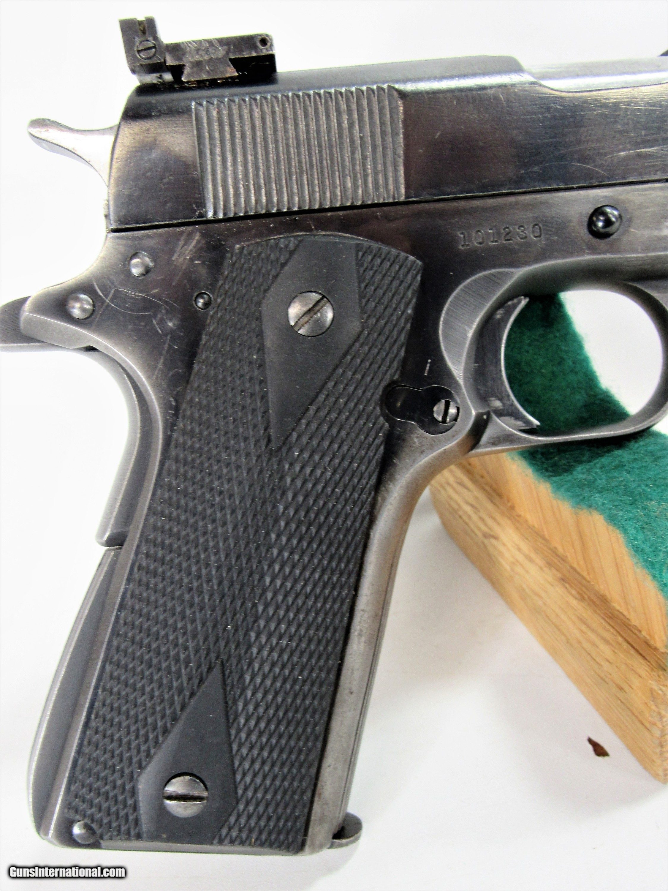 Description: COLT 1911 A1 45ACP. FRAME WAS ORIGINALLY A 1952 38 SUPER AND IS ABOUT 80%. SLIDE IS A REBLUED MILITARY SLIDE WITH MICRO TARGET SIGHT, A NATIONAL MATCH BUSHING AND A STANDARD UNMARKED REPLACEMENT BARREL. RUBBER GRIPS. SOLD Curio/Relic: Yes Handgun Caliber: .45 ACP (.45 Auto) |