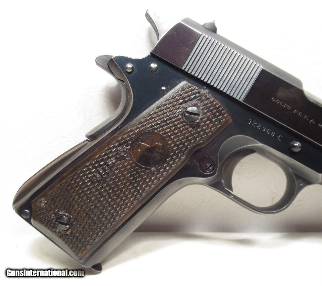 Description: Colt 1911 A1 Commercial Model Pistol (Pre-70 Series); Serial No. 322968-C; Made 1968; .45 Caliber; Lots of Original Blue Present with wear to straps and high edges; Original Colt Grips (DO NOT REMOVE – They will shrink immediately) with some damage; Non-Original Magazine; Perfect Action and Bore; Good 57 Year-Old Collector/Shooter Colt .45 Auto; See All Photos for Condition; No Texts; Call (254)541-5765 or Email Only; PERSONAL PROPERTY of Harold Wieser; NOTICE: We Do Not Do Any Consignments - All Items Listed are Owned by Us - NO SALES to New Jersey or New York City - Antiques Only to Massachusetts and California; NOTE: All Modern Firearms Must Go to FFL Dealer who will Accept From Individual with Texas Driver License; Price: $1,500 Shipped; Payment Address: Harold Wieser - 1466 U.S. Hwy 77 - Rosebud, TX 76570; SEND PAYMENTS VIA USPS PRIORITY MAIL; BEWARE of SCAMS!!! - DO NOT SEND MONEY or CORRESPONDENTS ELECTRONICALLY UNLESS YOU HAVE SPOKEN to HAROLD WIESER FIRST! (254)541-5765 SOLD Manufacturer: Colt Model: 1911 A1 Commercial Serial Number: 322968-C |