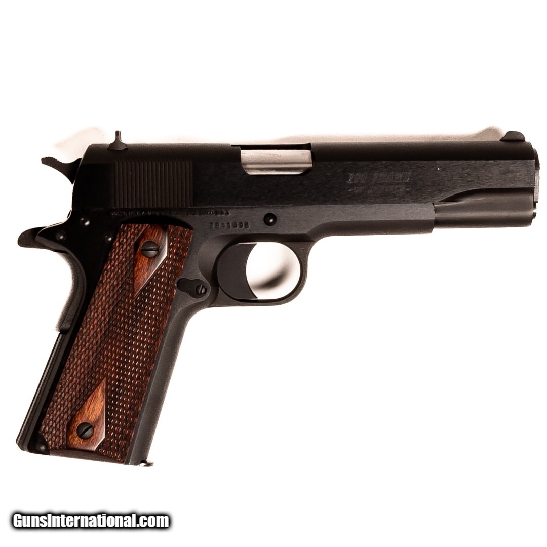 Description: Guns Listing ID: 692811 The Colt Government Model is the evolution of John Browning‚‚s iconic 1911, which was designed over a century ago. This tried and true pistol is a fantastic collector piece, self-defense sidearm, and recreational shooter. This Government Model is a \"100 Years of Service\" model. It includes the original case, manual, and three 7-round magazines. Get the best bang for your buck when you get a Certified Used Firearm . When you see the Certified Used stamp on any of our firearms, you can be confident that you’re getting exactly what you want – a gun only in very good to excellent condition and held to the highest quality standard. All Certified Used Guns come with a ‘no questions asked’ return policy . PLUS, ALL CERTIFIED USED GUNS SHIP FREE SOLD Manufacturer: COLT Model: 1911 Anniversary Model Caliber Info: .45 COLT/.45 ACP Condition: Used - Certified Barrels: 5 BARREL Finish: BLACK |