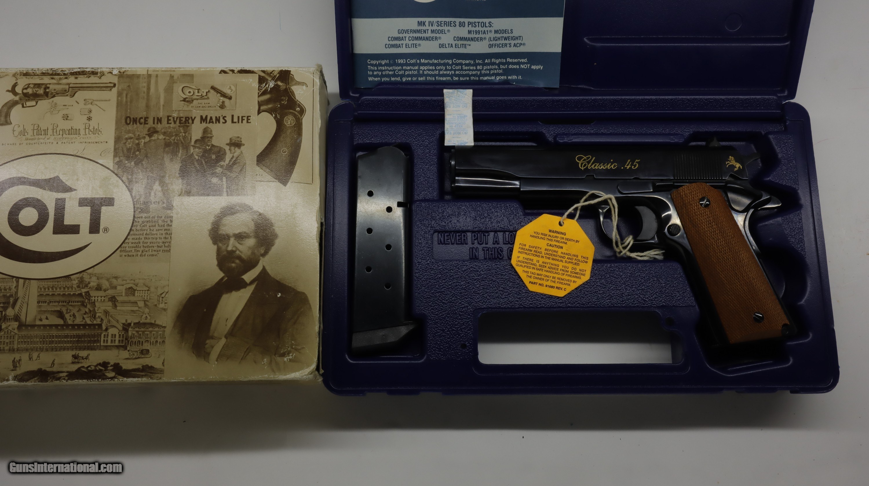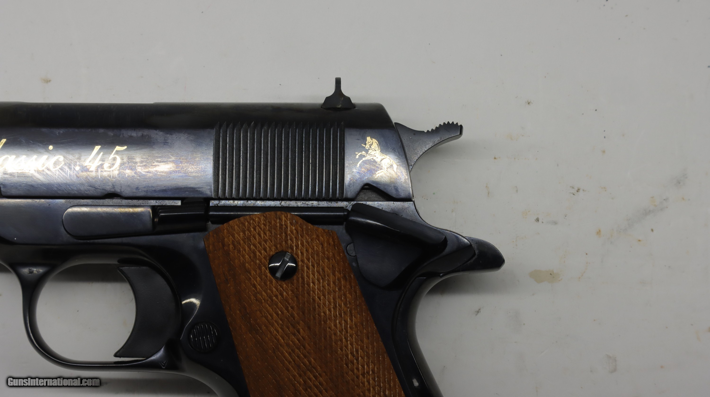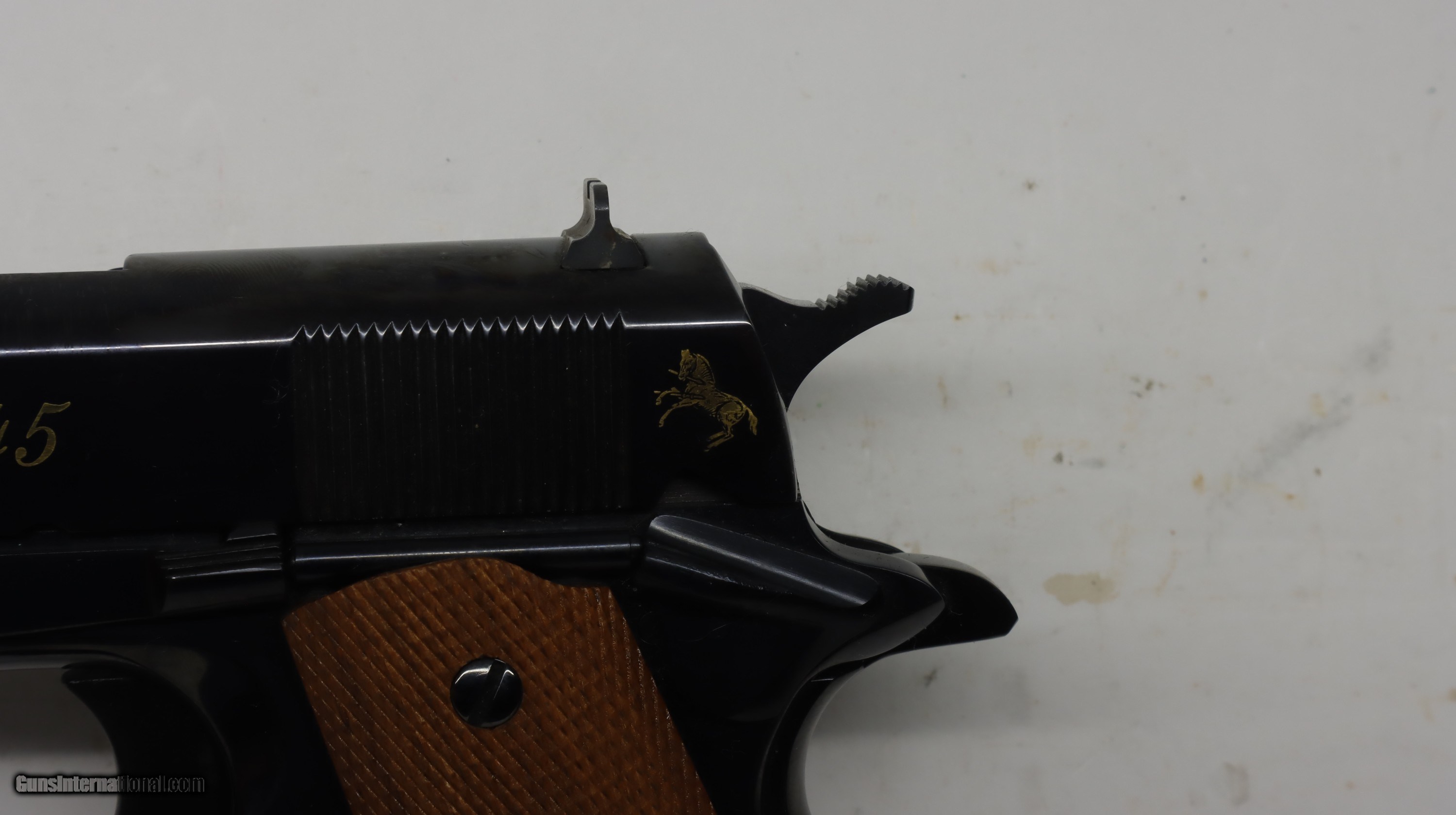Description: Colt 1911 Classic 45, 45 ACP, Springfield Armory Royal Blue, new old stock. Sn is SFLDA09xx. New in cast in the factory shipping box/cover. Hard to find gun! We will trade for silver and gold. All my guns (except layaway) come with a non-firing, 3 day unconditional return privilege, from the day UPS delivers to your dealer. Buyer pays shipping both ways if the gun comes back. Please make sure to make it to your FFL to inspect within the 3 days. We accept personal check, any certified funds, Vennmo or Zellle. We can also take your credit card, +3%. Email me if you would like these pictures sent to you, they will come through bigger and better than on the listing page here. We do offer Layaway. Our standard terms are 25% down, 90 days. Initial deposit is not refundable. Layaway guns do not have a return/inspection period. Email me with any questions. Please check your local laws to confirm it is legal to own in your state! Buyer pays $30 shipping and insurance to your FFL in the lower 48. AK, HI or PR is extra. I will ship to California, as long as it is legal, NO PROBLEM! I am a licensed FFL, and will include a copy of my FFL with the gun for your dealer’s records. I will ship to a C&R if the gun is eligible. I will ship to California, but you need to confirm the gun is legal where you are, California or other. WE BUY AND CONSIGN GUNS AND GUN COLLECTIONS! Will travel! I am always looking for good clean, old original Winchesters to buy, consign, or trade, especially Pre '64's model 70's and model 54's. WE ALSO TRADE FOR CLASSIC CARS AND TRUCKS! We also trade for gold and silver. SOLD Handgun Caliber: .45 ACP (.45 Auto) Manufacturer: Colt Model: 1911 Condition: New Old Stock |