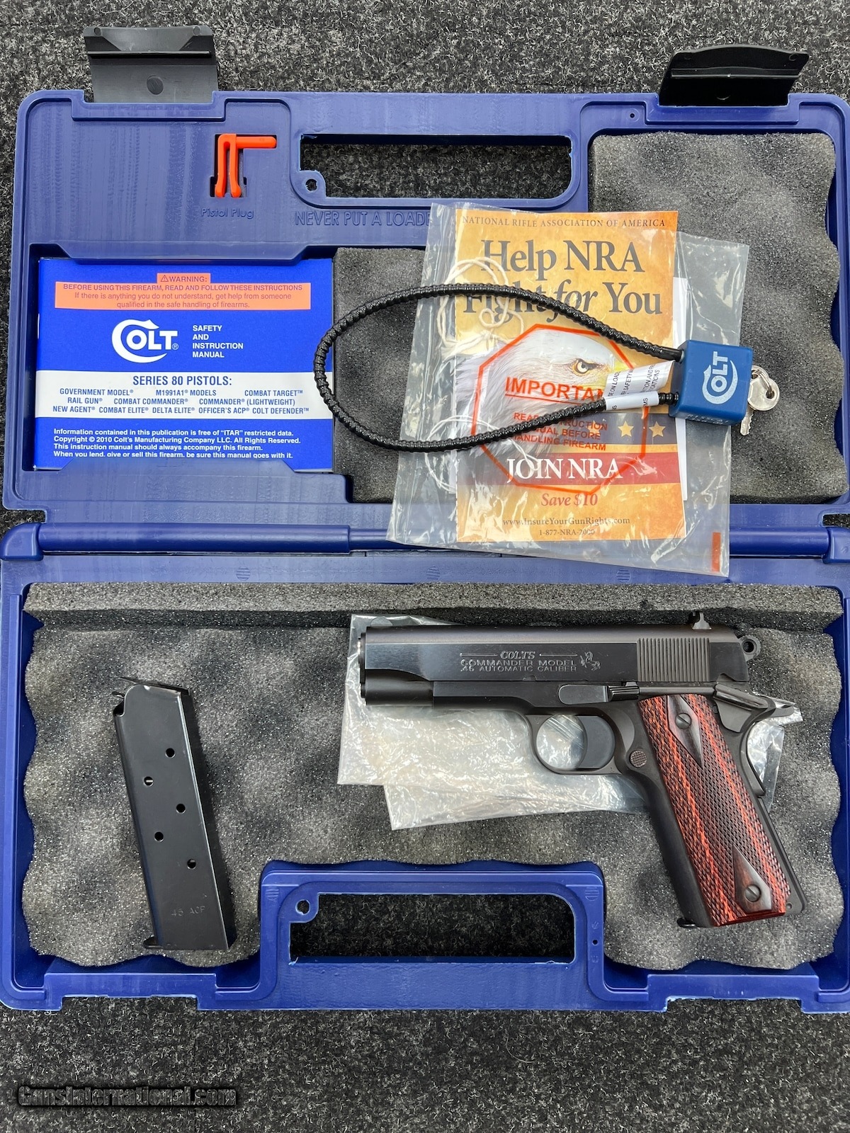 Description: Guns Listing ID: 472489 *************Colt Combat Commander. ******************* Limited series 100 years of service. Made 2011, 4-1/4\" barrel, chambered in .45 ACP. This pistol is in excellent original condition - DON‚‚T LOOK LIKE IT WAS EVER USED. Has the matching original box with 2 mags SOLD Manufacturer: COLT Model: 1911 COMMANDER "100 YEARS OF SERVICE Caliber Info: .45 ACP Condition: Used - Non-Certified Barrels: 4.25 BARREL Finish: BLUE |
