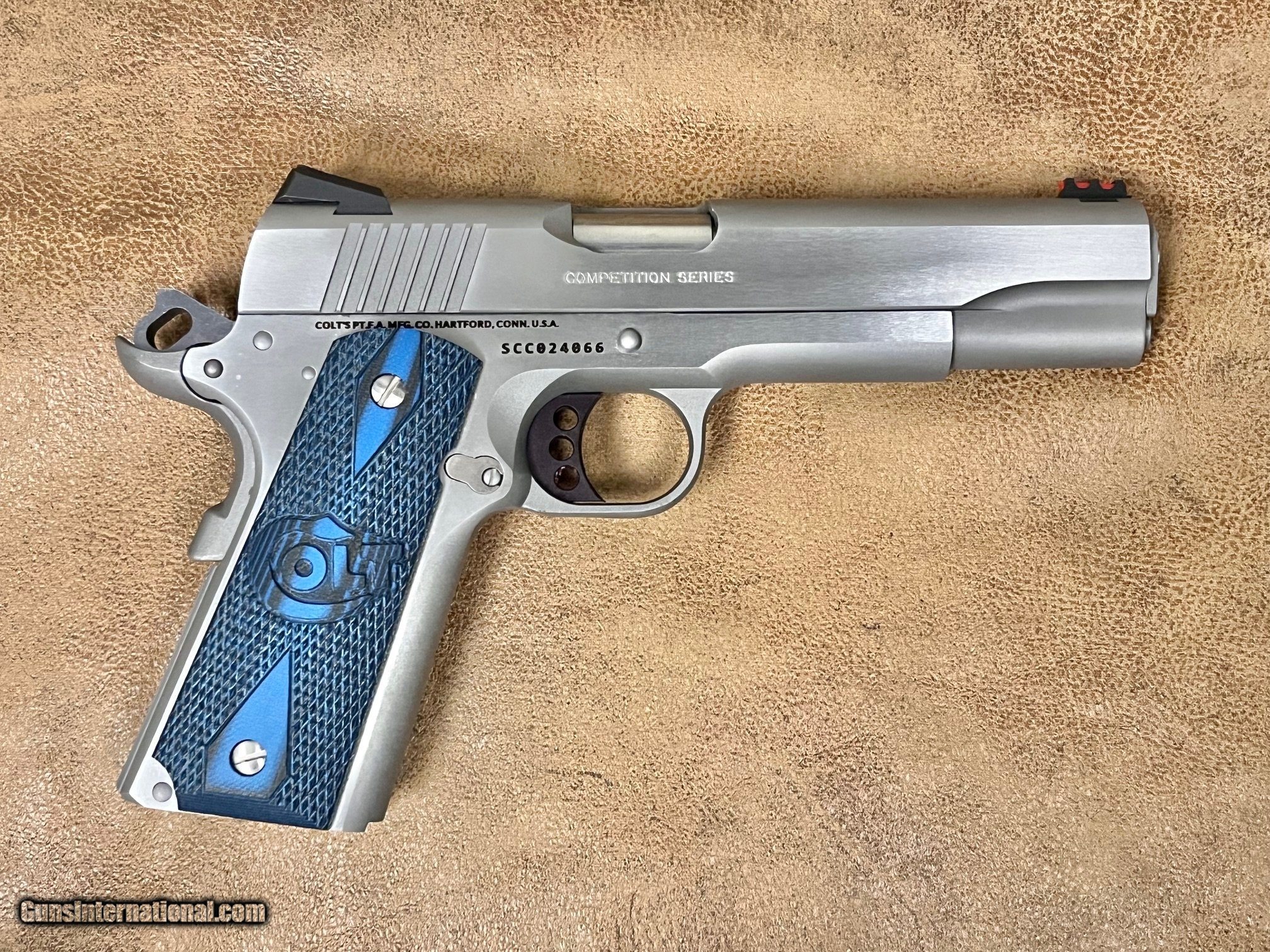 Description: Guns Listing ID: 509588 Colt‚‚s Manufacturing, Competition SS, Semi-automatic, Metal Frame Pistol, Full Size, 45ACP, 5\" Barrel, Steel, Stainless Finish, G10 Checkered Blue Grips, Novak Red Fiber Optic Front Sight, Novak Adjustable Rear Sight, (1)8 Round Magazine, Series 70 Firing System, UNIFRED in the original bo SOLD Manufacturer: COLT Model: 1911 COMPETITION Caliber Info: .45 ACP Condition: Used - Non-Certified Barrels: 5 BARREL Finish: STAINLESS Weight: 2.3 lbs. |
