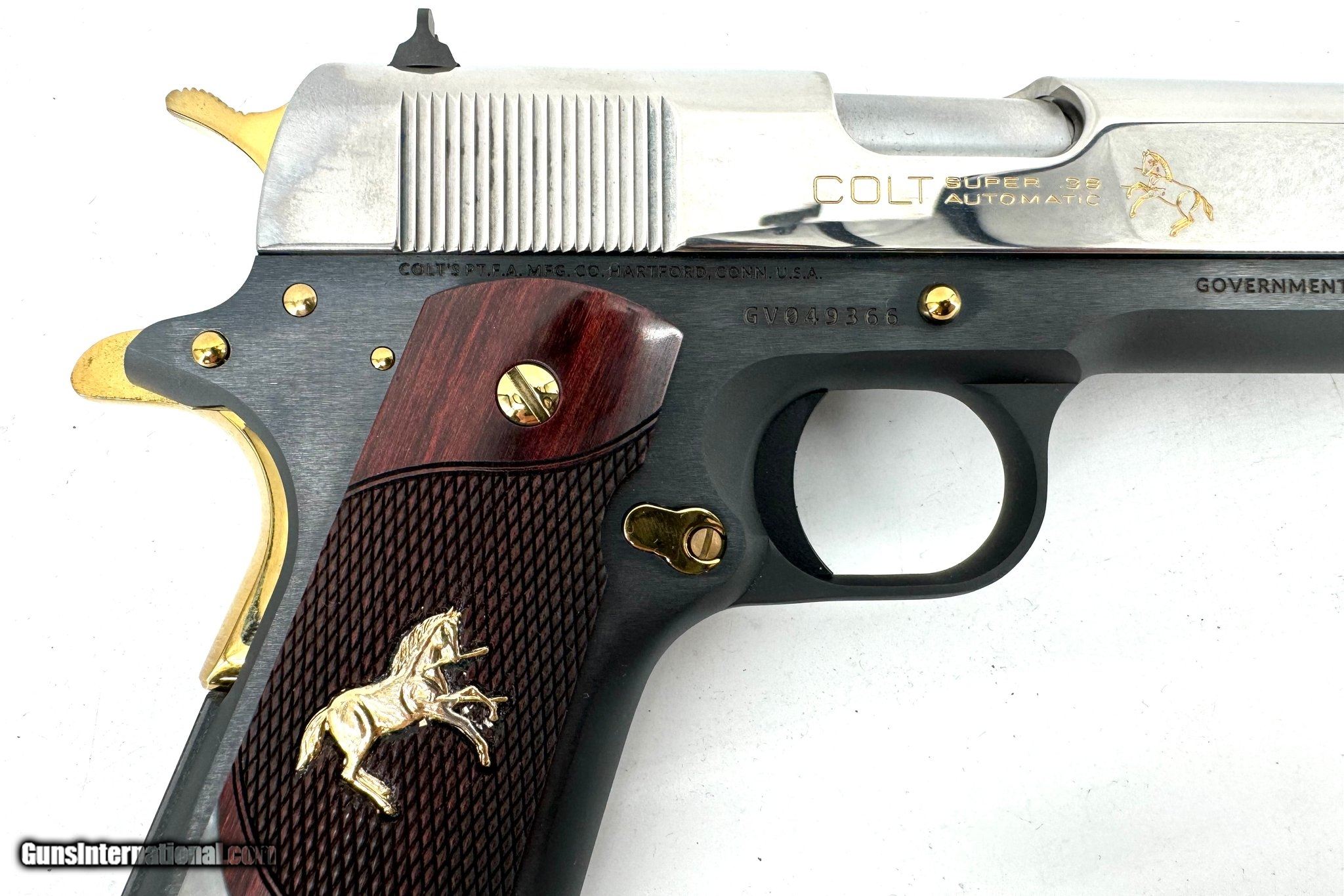 Description: Guns Listing ID: 1262057 Colt Custom Government Model 1911 “El Matadore” equipped with chrome slide, gold trim and custom grips. This is a display model SOLD Manufacturer: COLT Model: 1911 Custom Government Caliber Info: .38 SUPER Condition: Used - Non-Certified Barrels: 5 BARREL Finish: CHROME |