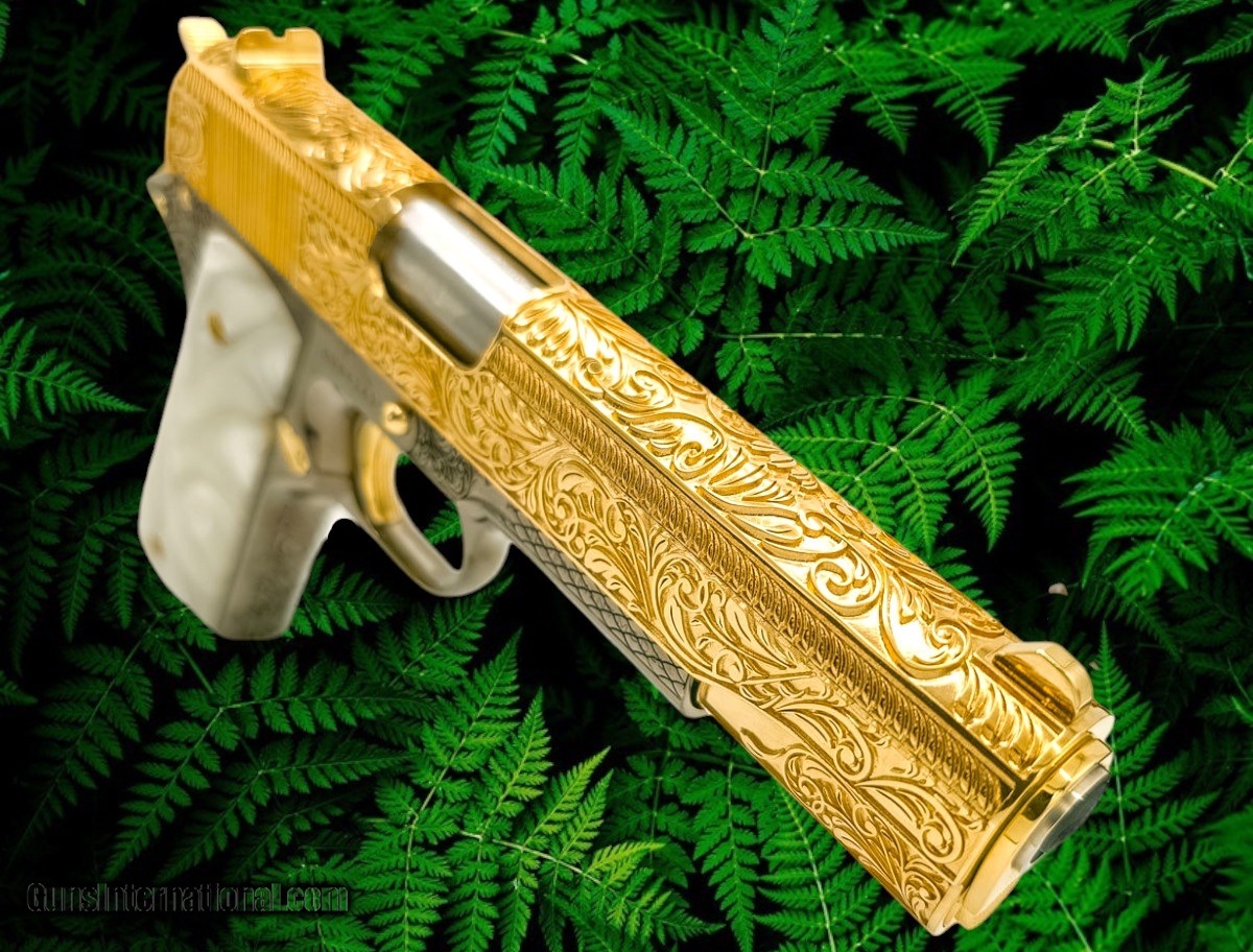 COLT 1911 Customized , 24K Gold, French Scrolls Engraved , 45ACP - RARE .45 ACP